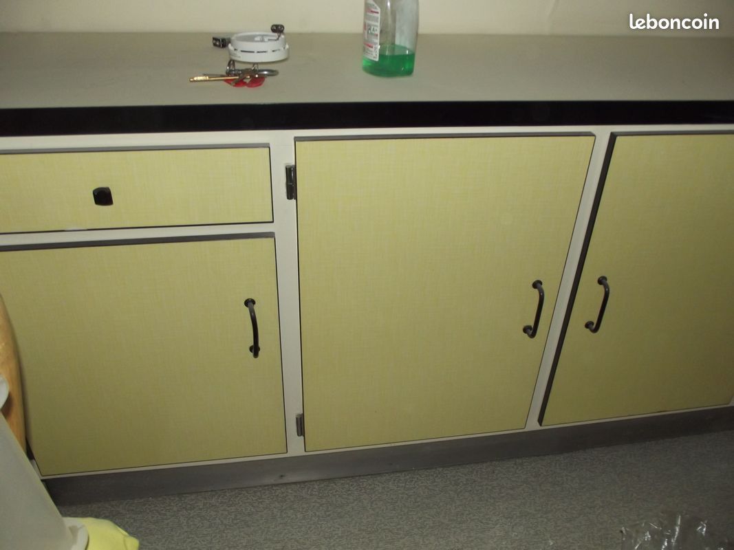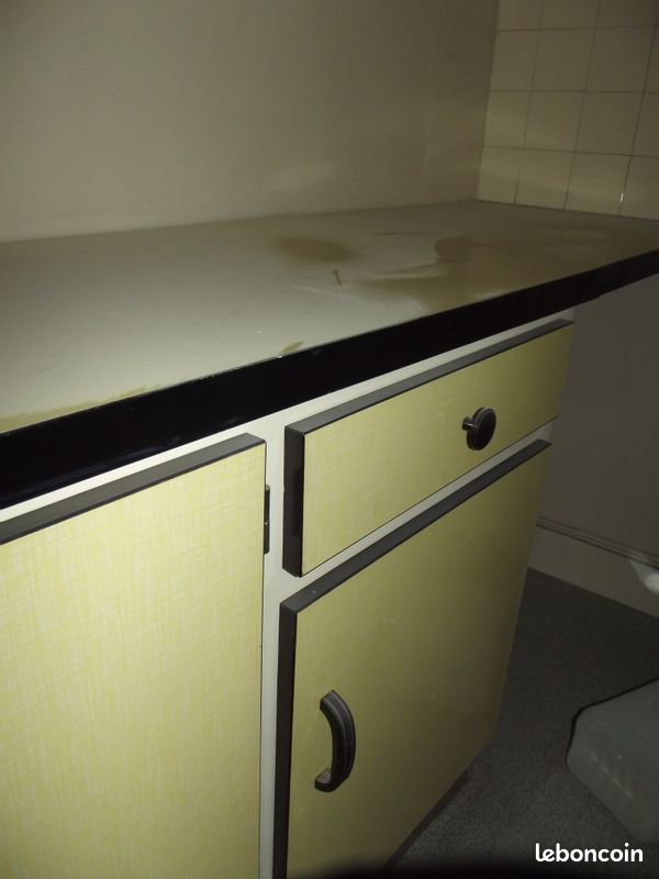 Le meuble est très sain, propre, aucune trace de gras ni d'humidité (il vient juste d'être démonté car il était utilisé il y a peu encore et n'est pas remisé dans un endroit sale, humide ou inapproprié pour un meuble de cuisine comme un garage ou une cave), il ne bouge pas.