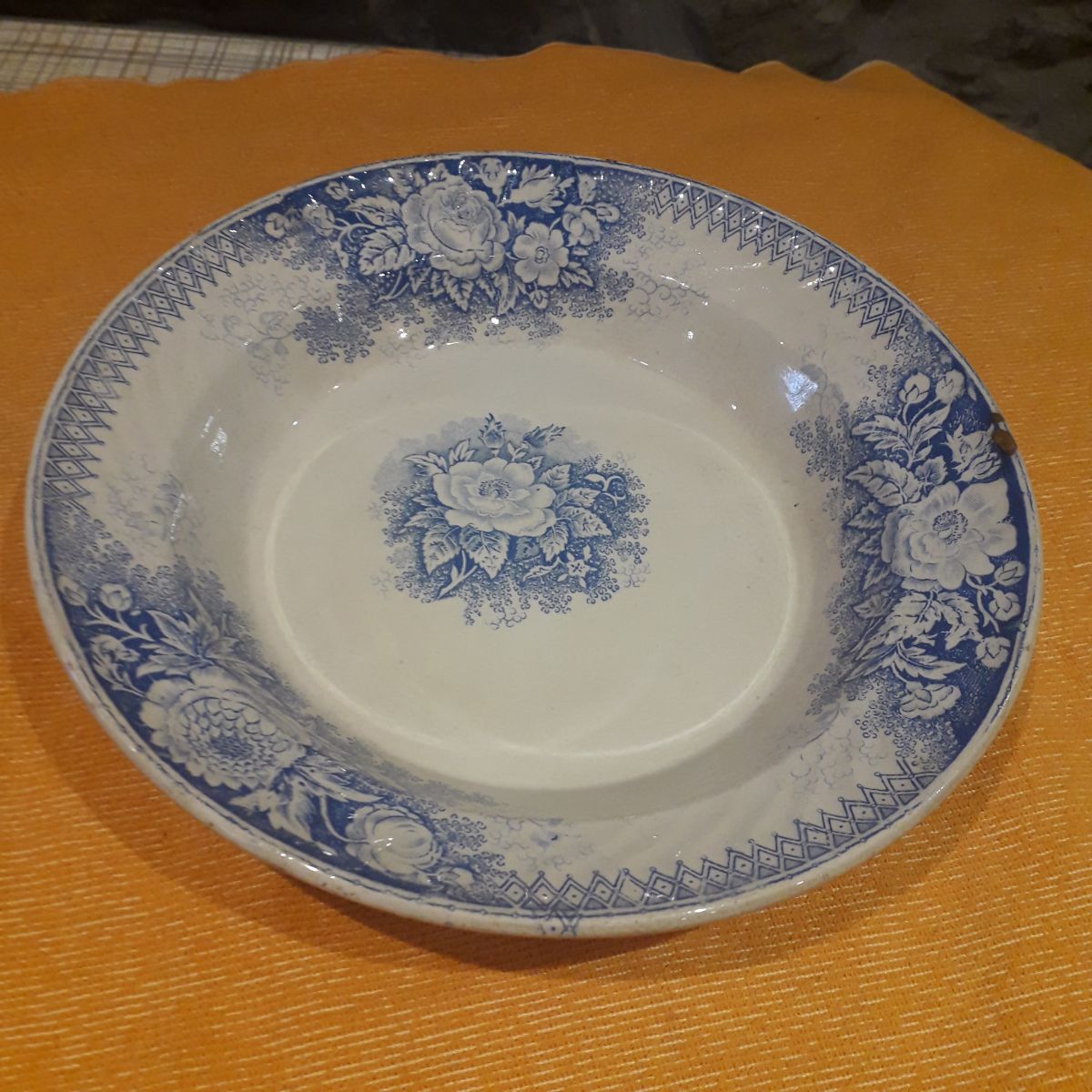 plat en porcelaine de Sarreguemines, collection Jardinière. Une petite ébréchure sur le tour (voir photo). Diamètre: 25 cm