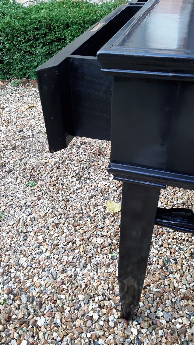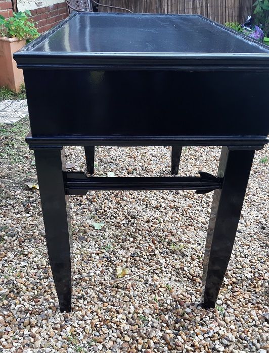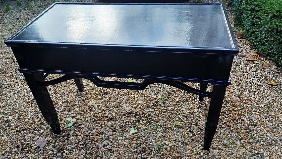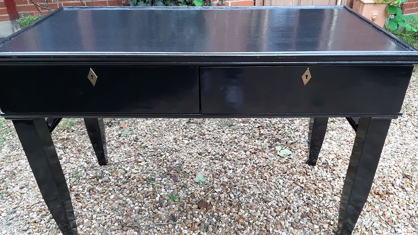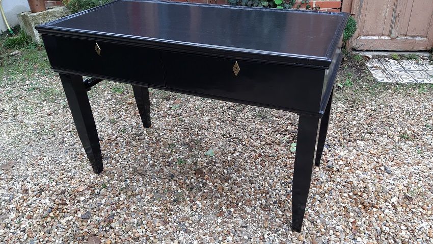 Bureau laqué noir à deux tiroirs. Pieds modernes originaux (design XXème). 120 x 60 H 80