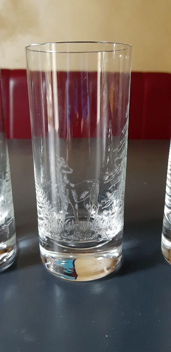 Lot de 6 verres Moser en cristal à décor gravé de paysages et animaux. Scène différente pour chaque verre. H 16,5 Expédition gratuite