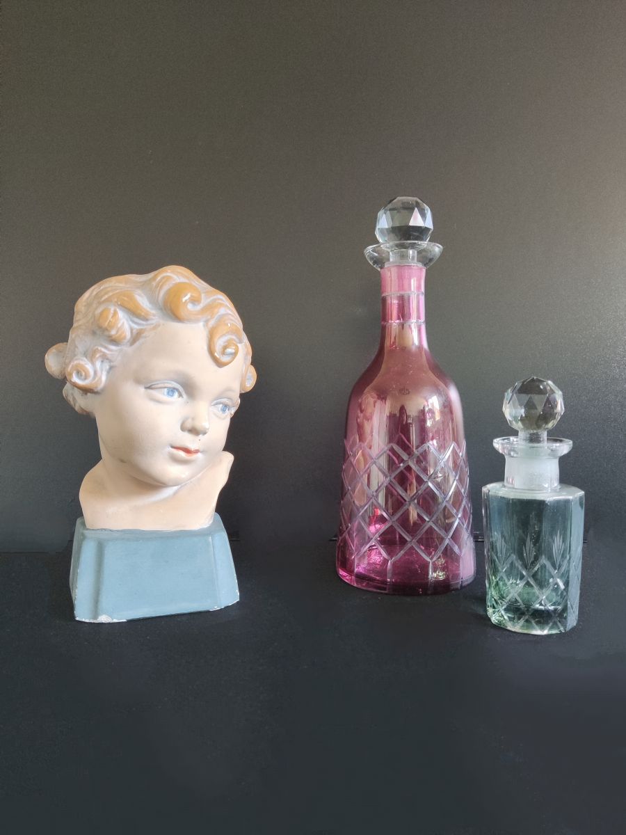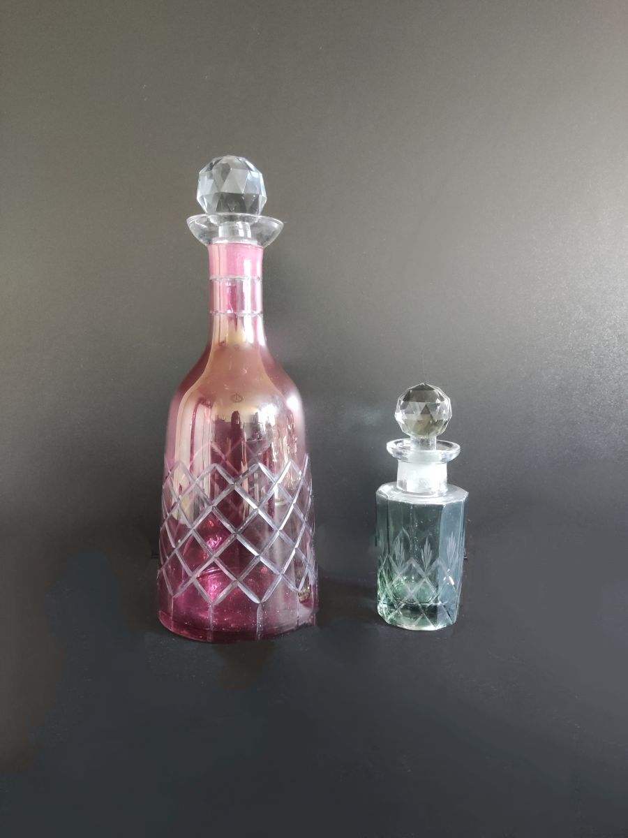 rose : H = 29 cm diamètre = 10,5 cm, bouchon = L 7 cm x 4 cm