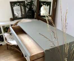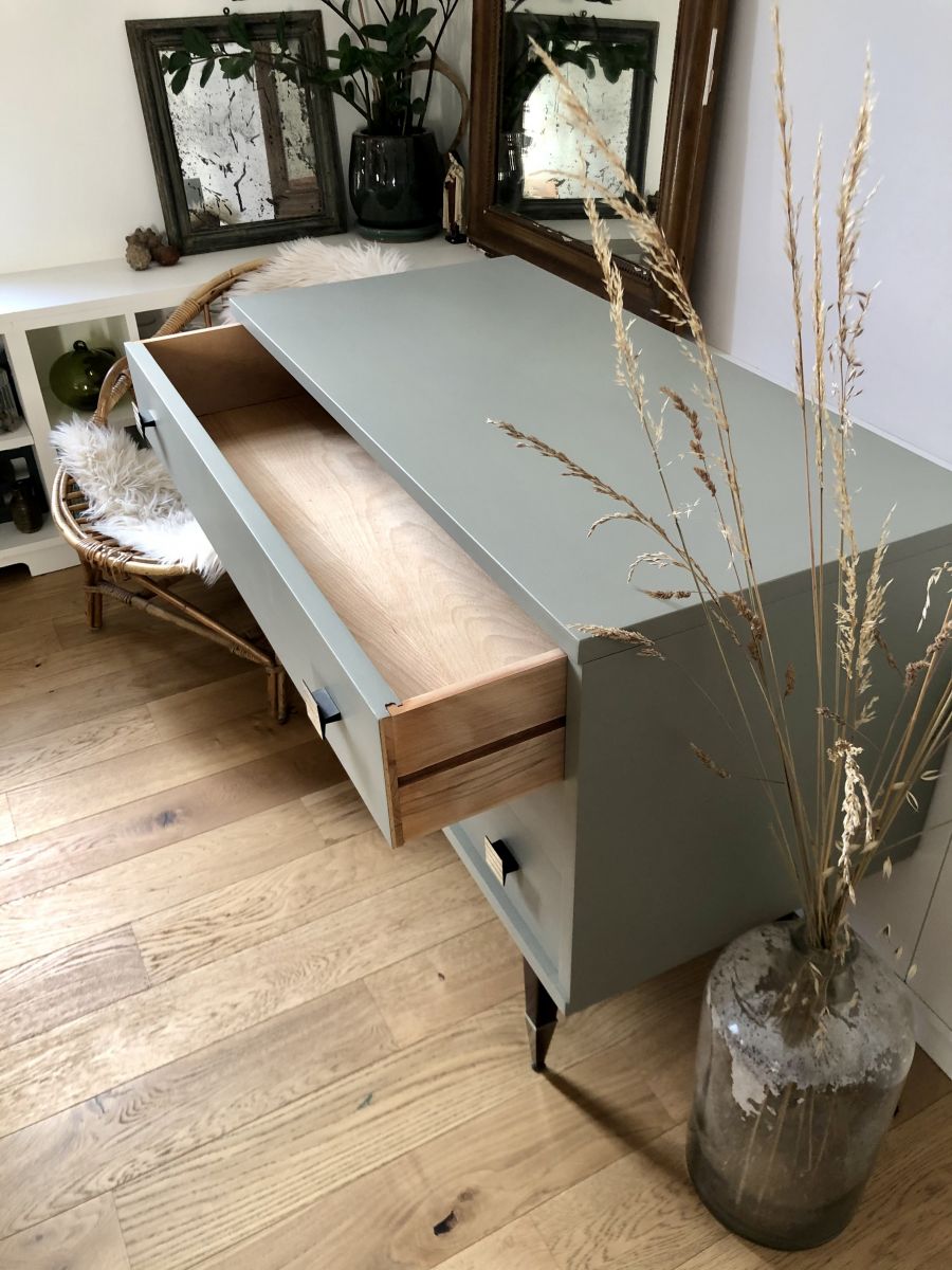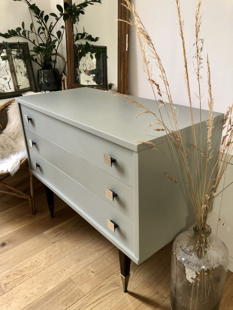 Elle a été mise en beauté avec la douce nuance "Gris chaud" de chez Ressource.
