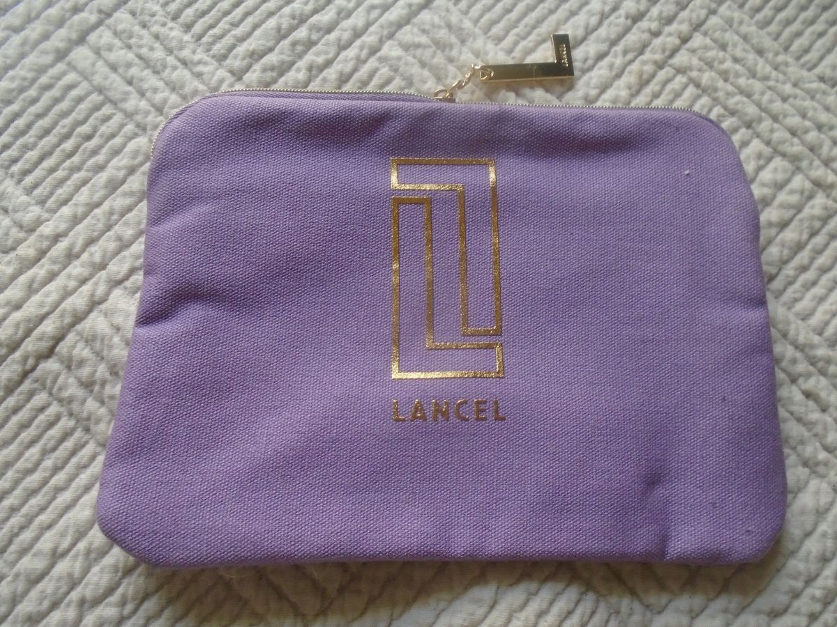 Pochette à zip doré avec plaque d'authentification Lancel, mauve et logo doré