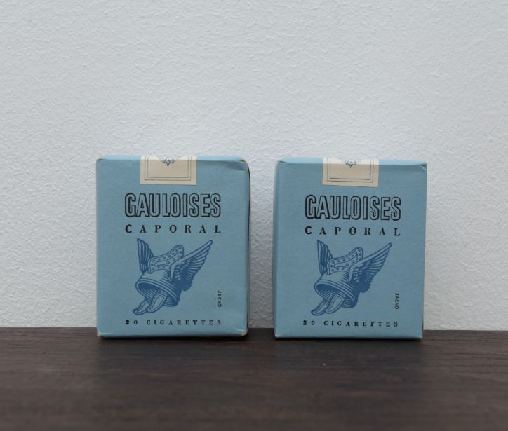 2 Paquets de GAULOISES CAPORAL TROUPE vintage années 70, très bon état. Couleur bleue du paquet parfaitement conservée.