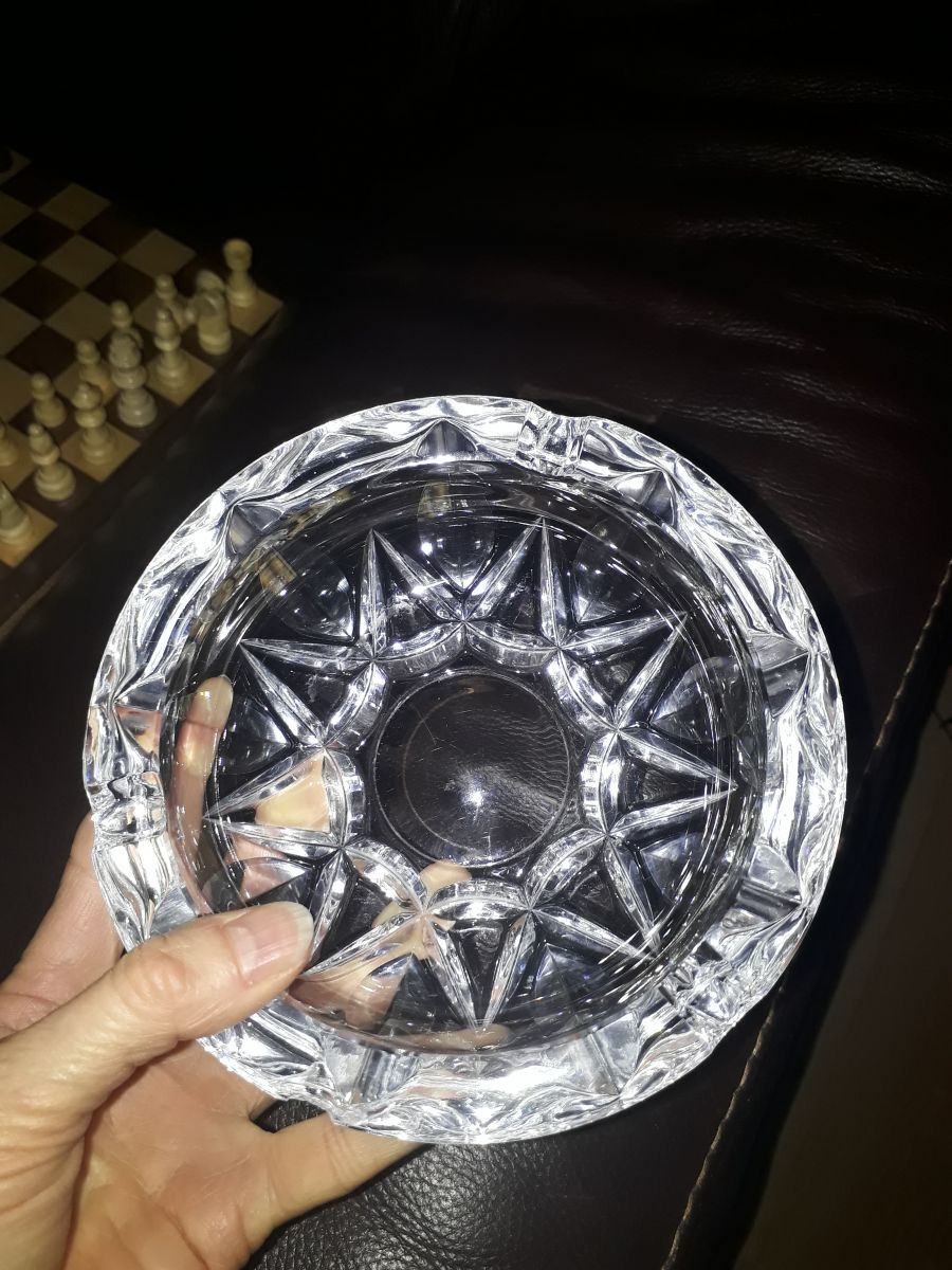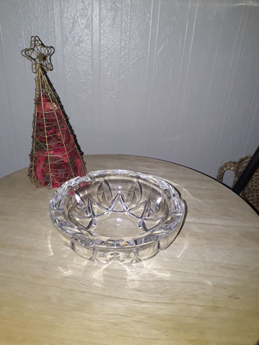 Grand cendrier ou vide poche rond en verre ciselé vintage. Belle dimension, joli détail ciselé. Verre épais très lourd (900 gr) tres bon état