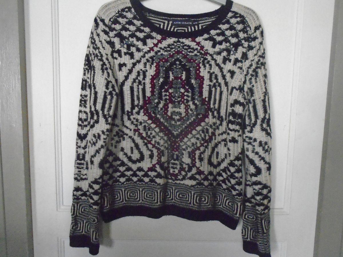 Pull col rond jaquard rouge, noir crème Antik Batik, T 40