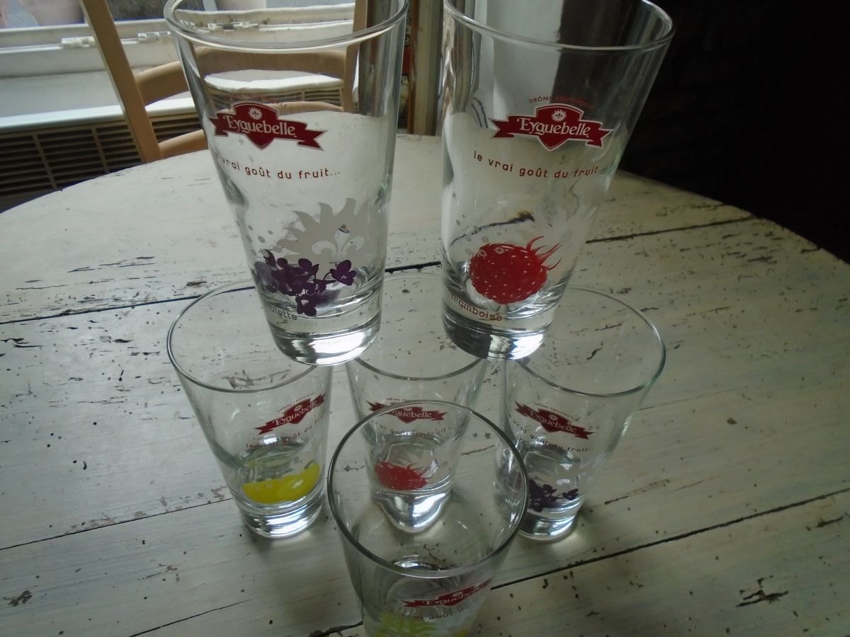 6 verres à jus de fruits/sirop, fond très épais, bonne stabilité, décor fruits