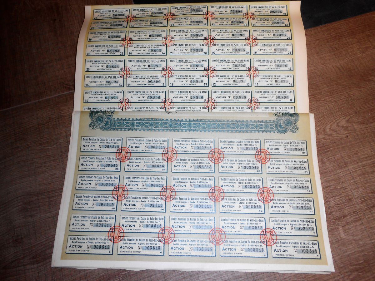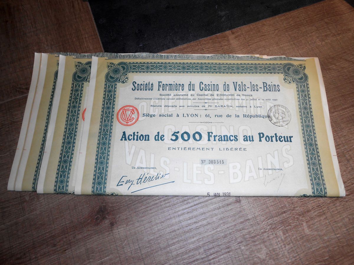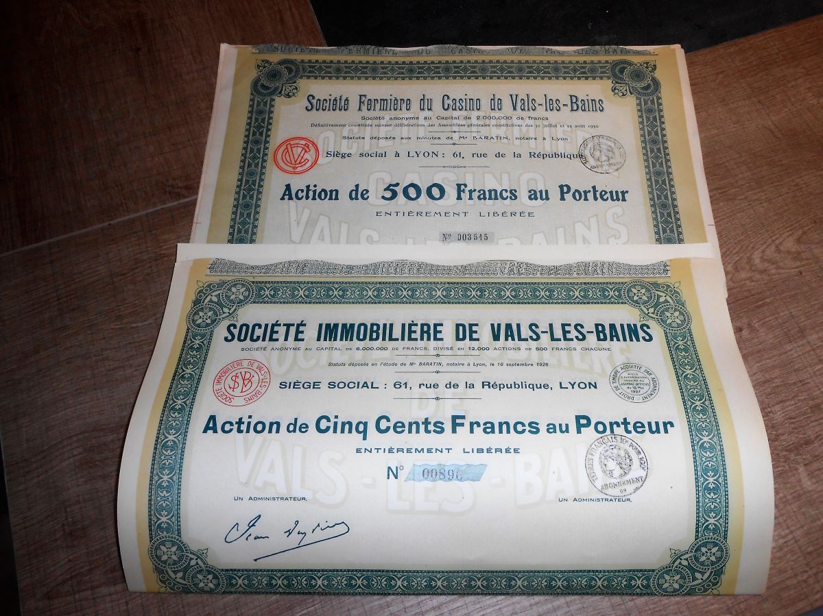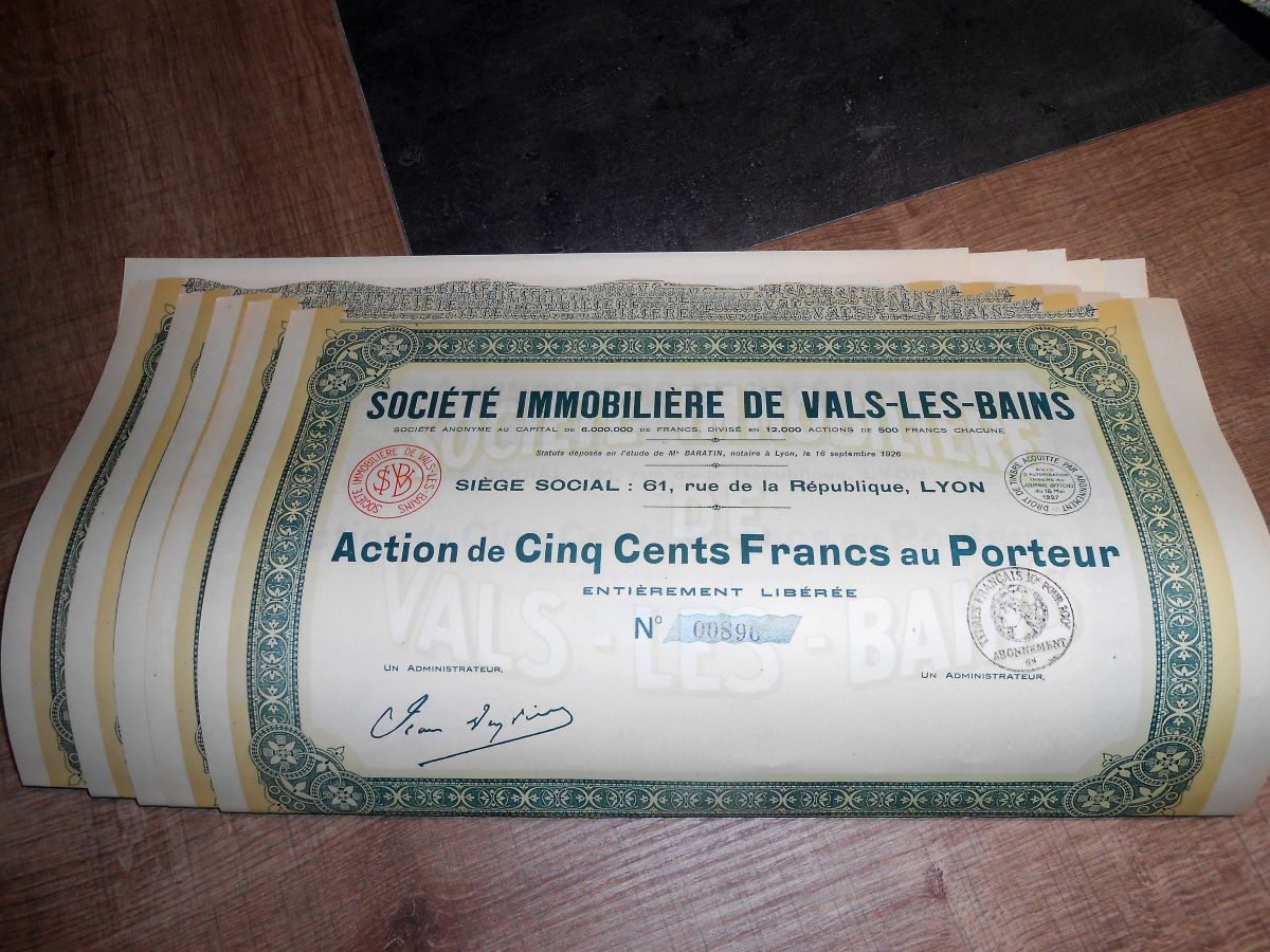 Lot 10 Actions de 500 francs au Porteur en 2 lots 1927-1931