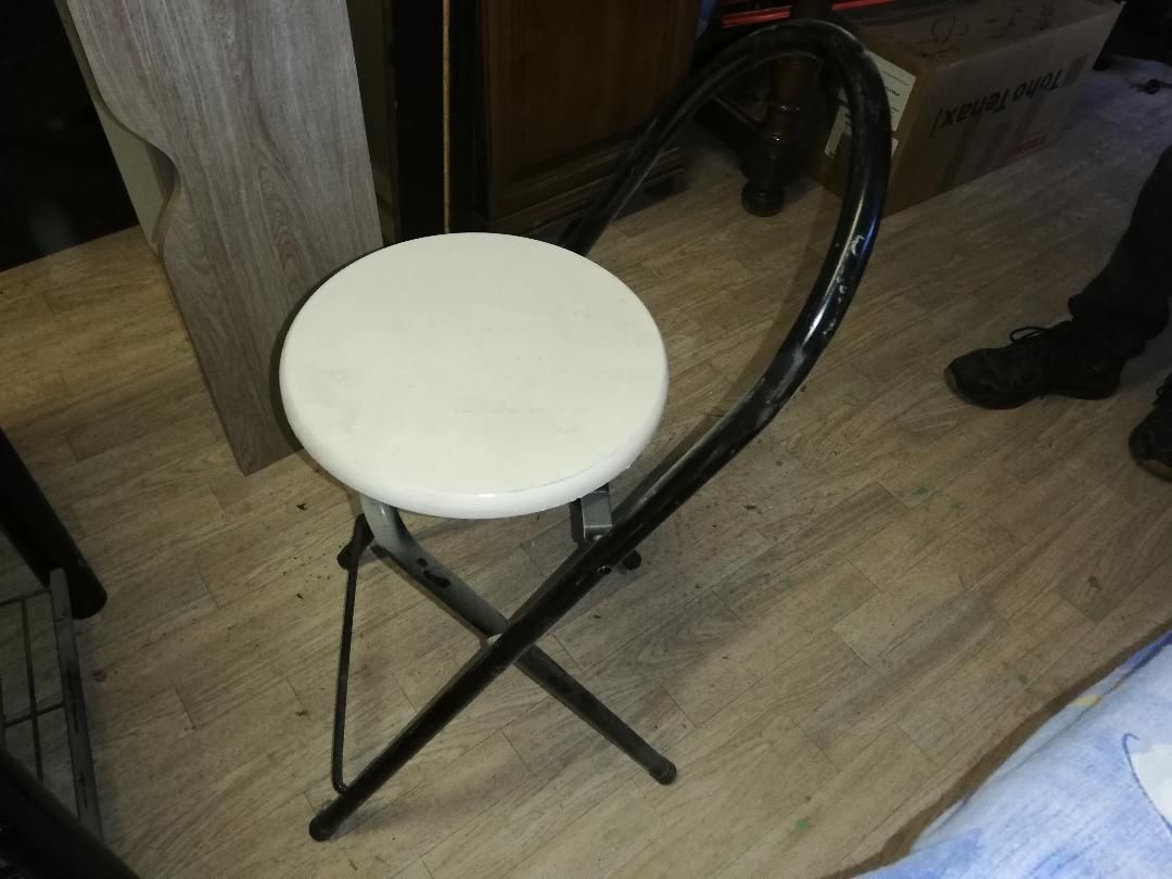 Bureau en fer noir, dessus mélaminé blanc, fabrication maison, design industriel, en bon état + 2 chaises assorties.