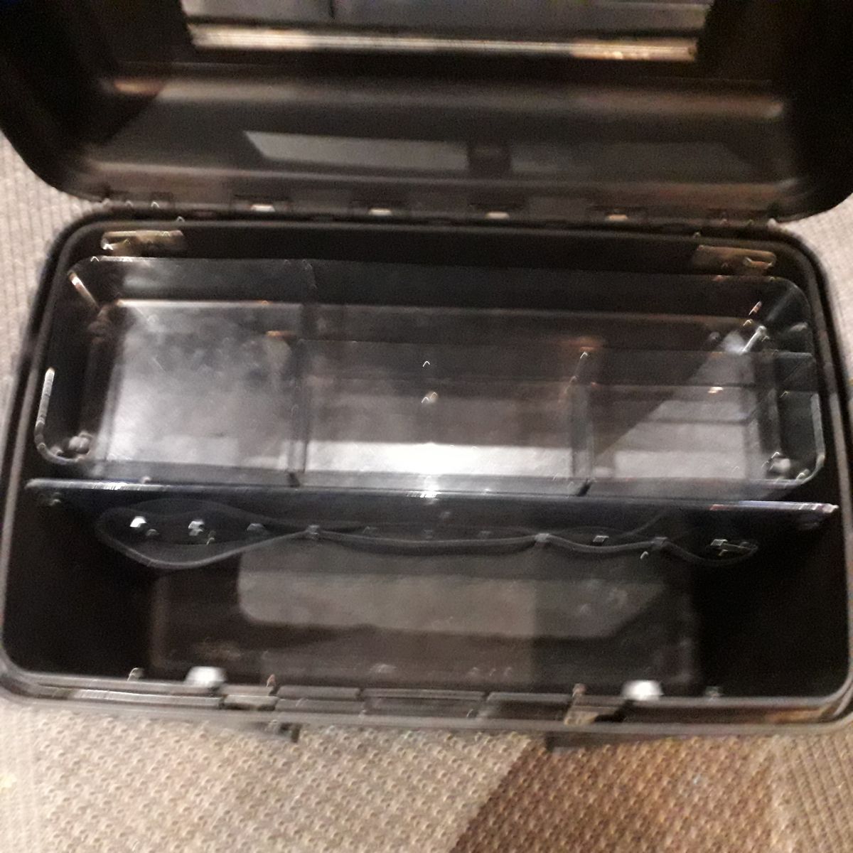 Le classique Vanity Delsey. Rigide. Dimension: 40cm L X 24cm l X 25 cm H. Je n'ai plus les clefs. il y a le compartiment à maquillage en plastique.