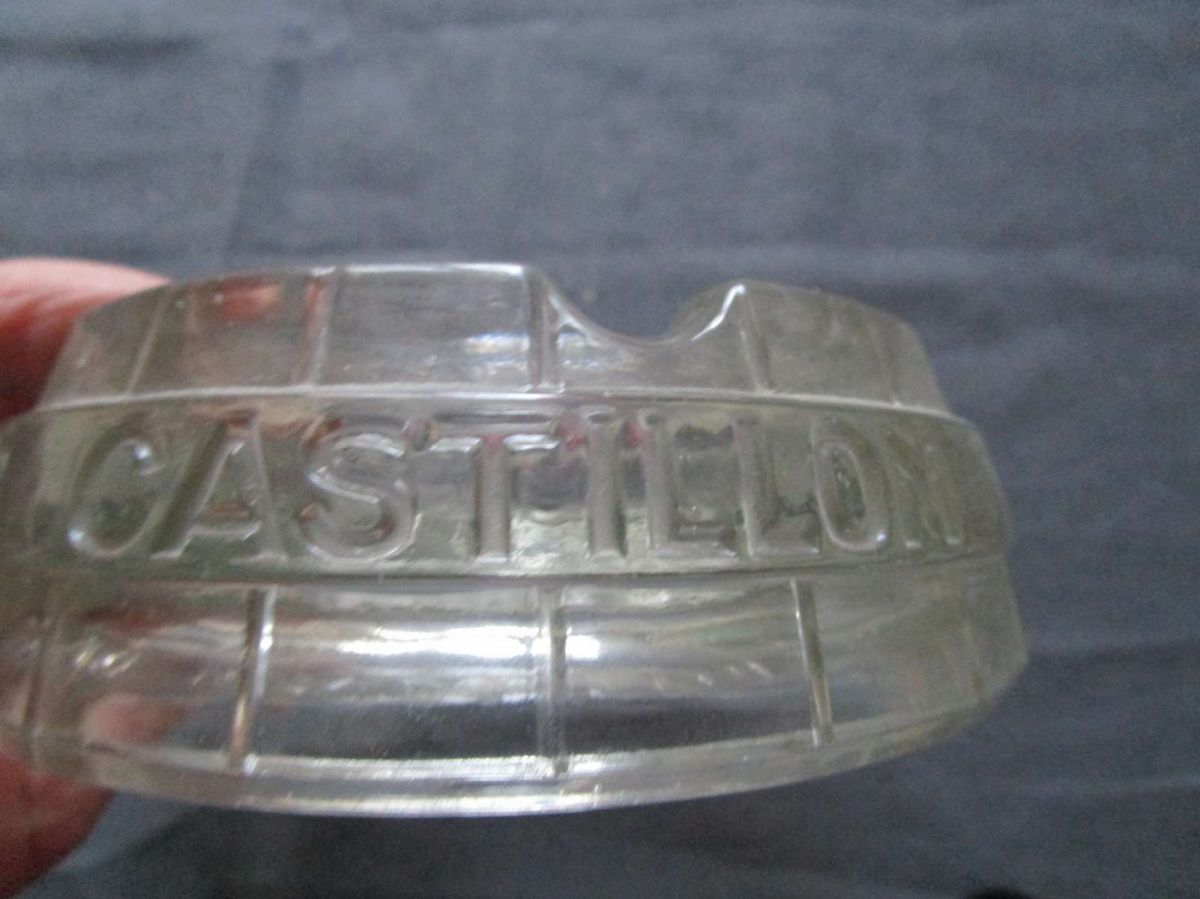 Cendrier publicitaire "COGNAC CASTILLON" en verre plein, diamètre 13 cm