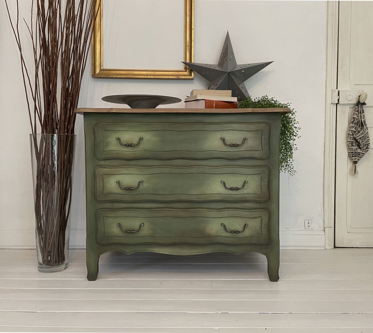 Ré-imaginé à l'aide de peintures à la craie; Olive, Lem Lem, Amsterdam Green et Honfleur pour créer une patine vieillie.