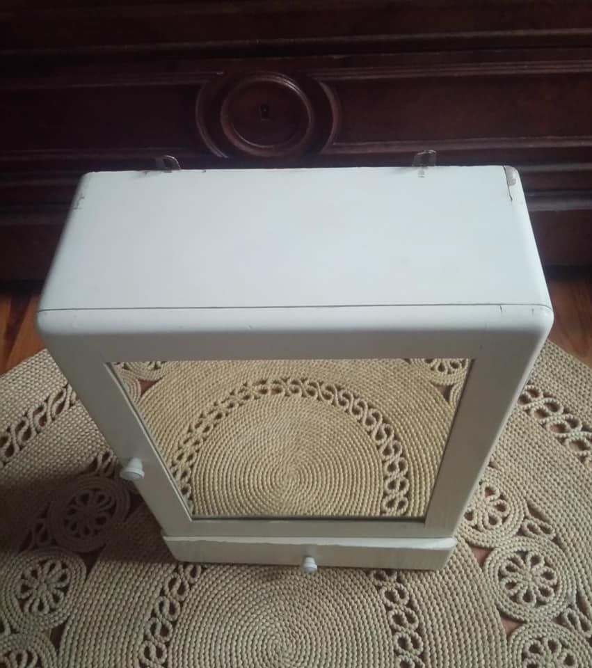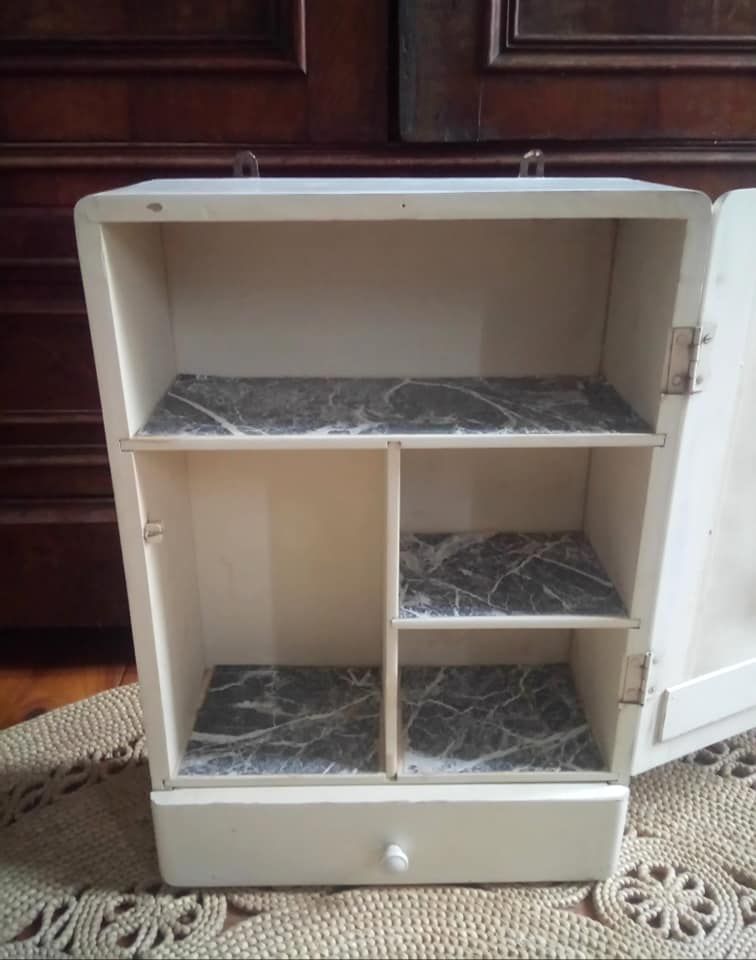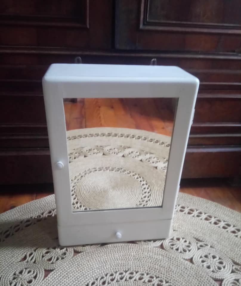 Charmante armoire de toilette en bois avec son miroir en façade et son tiroir.