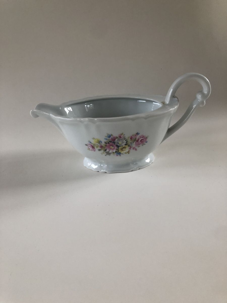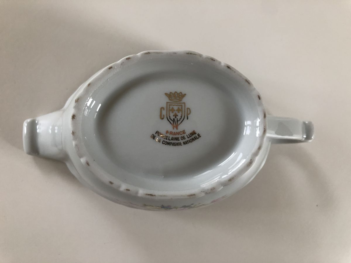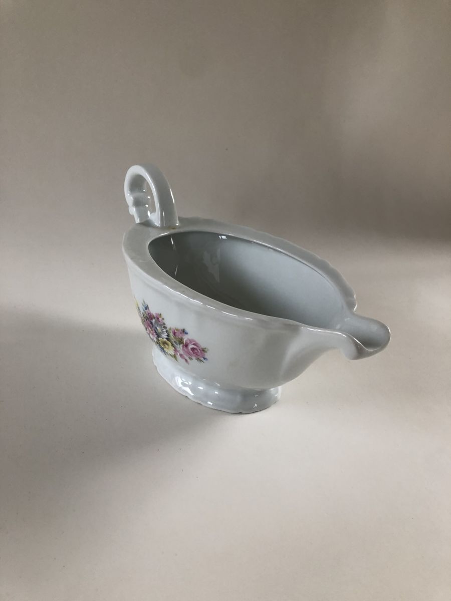 Saucière en porcelaine de Vierzon (Compagnie nationale), au motif floral. Envoi envisageable si demande.