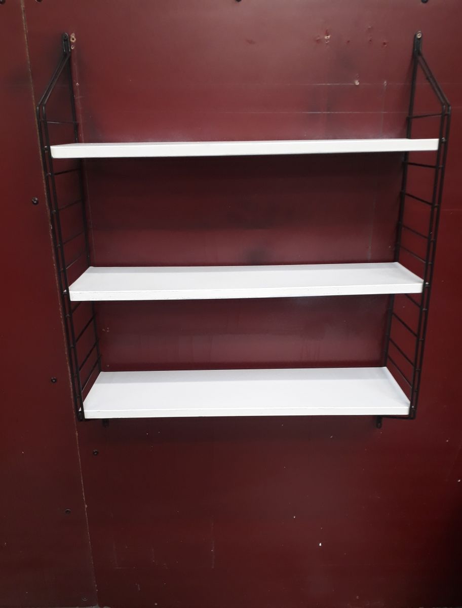Étagère vintage . H.85x66 style sring (tomado) 3 plateaux blanc 20x64cm 1950 a 70s