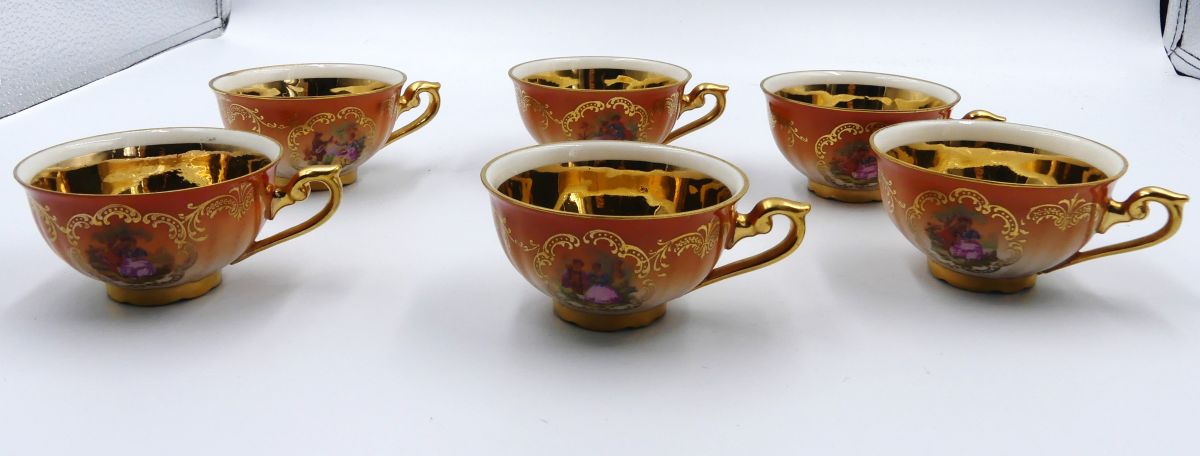 Tasse elles sont dorés a l 'interieur : 9.5 cm de diametre et 4.5 cm de profondeur