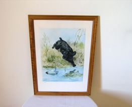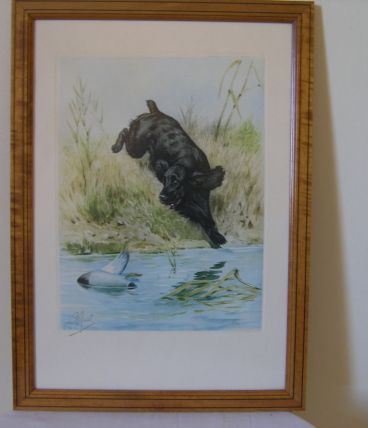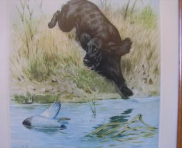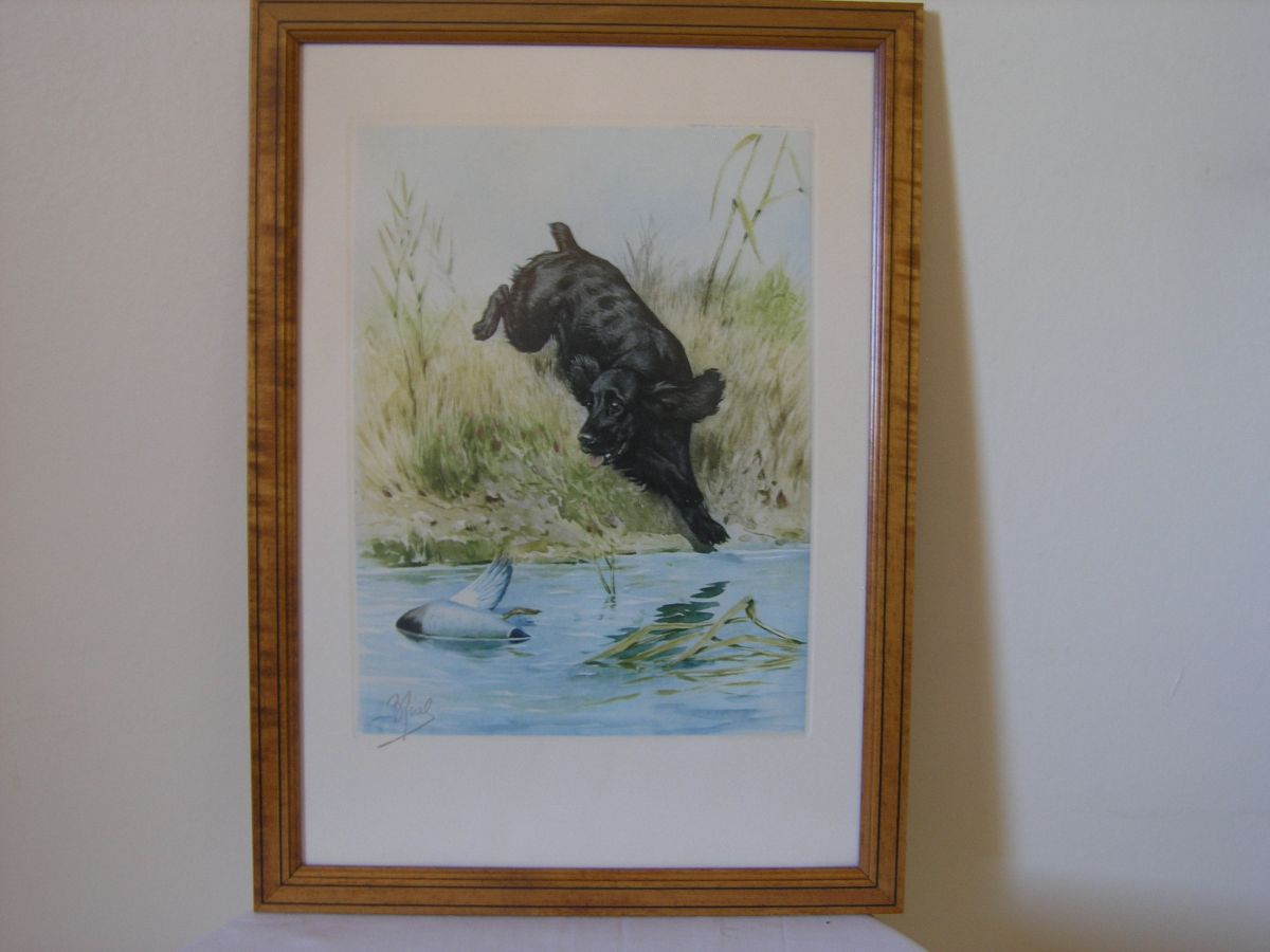 Epagneul à la chasse. l'artiste est Boris Riabouchinsky dit RIAB (1898-1975), connu et côté dans les salles de vente, Artprice et autres.