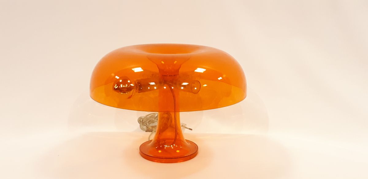 Lampe de décoration en plexiglas orange avec 4 ampoules.