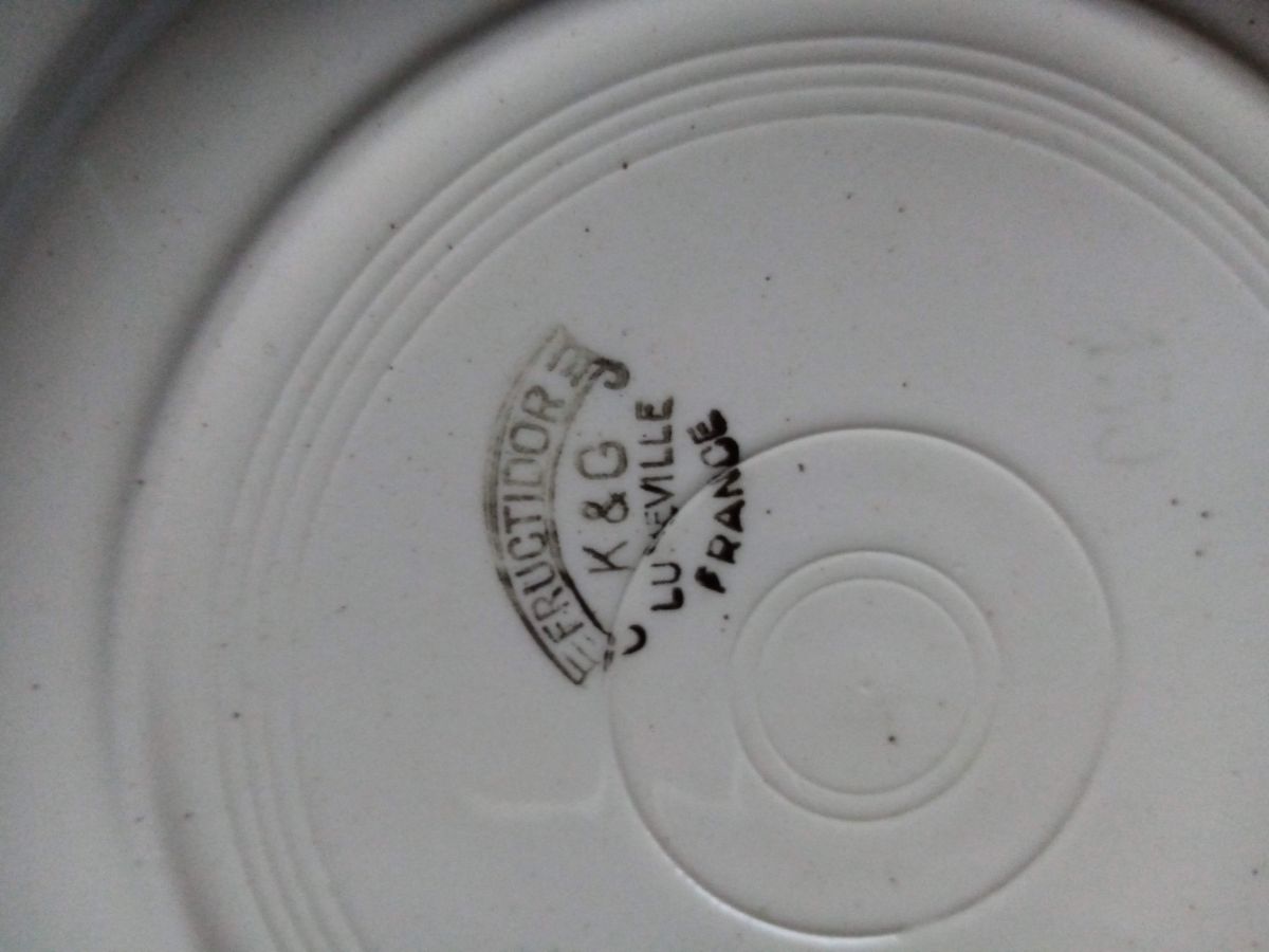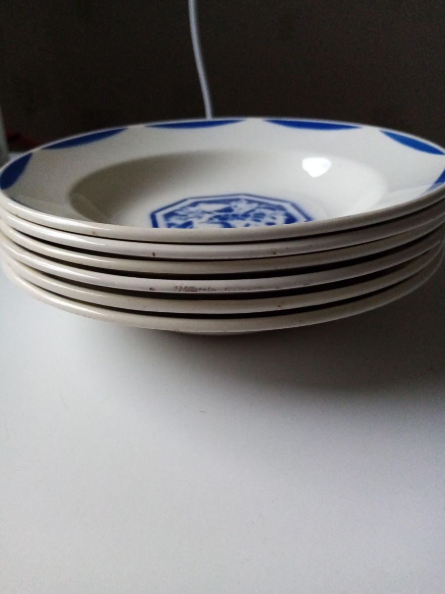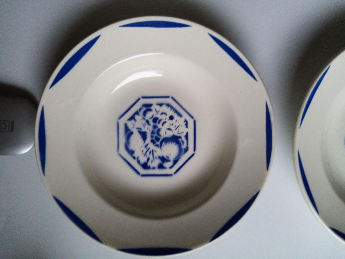 6 assiettes creuses de Lunéville, K&G modéle fructidor, crème avec motif bleu