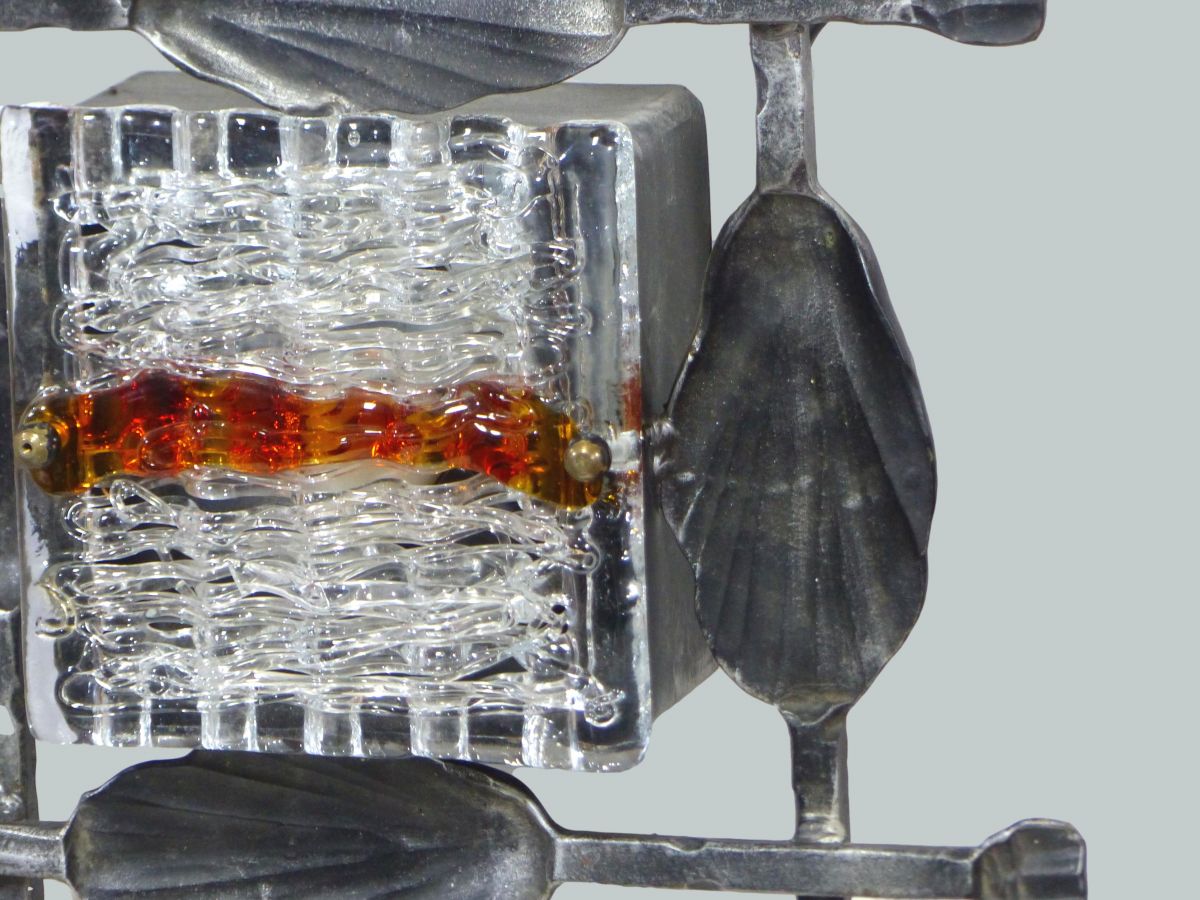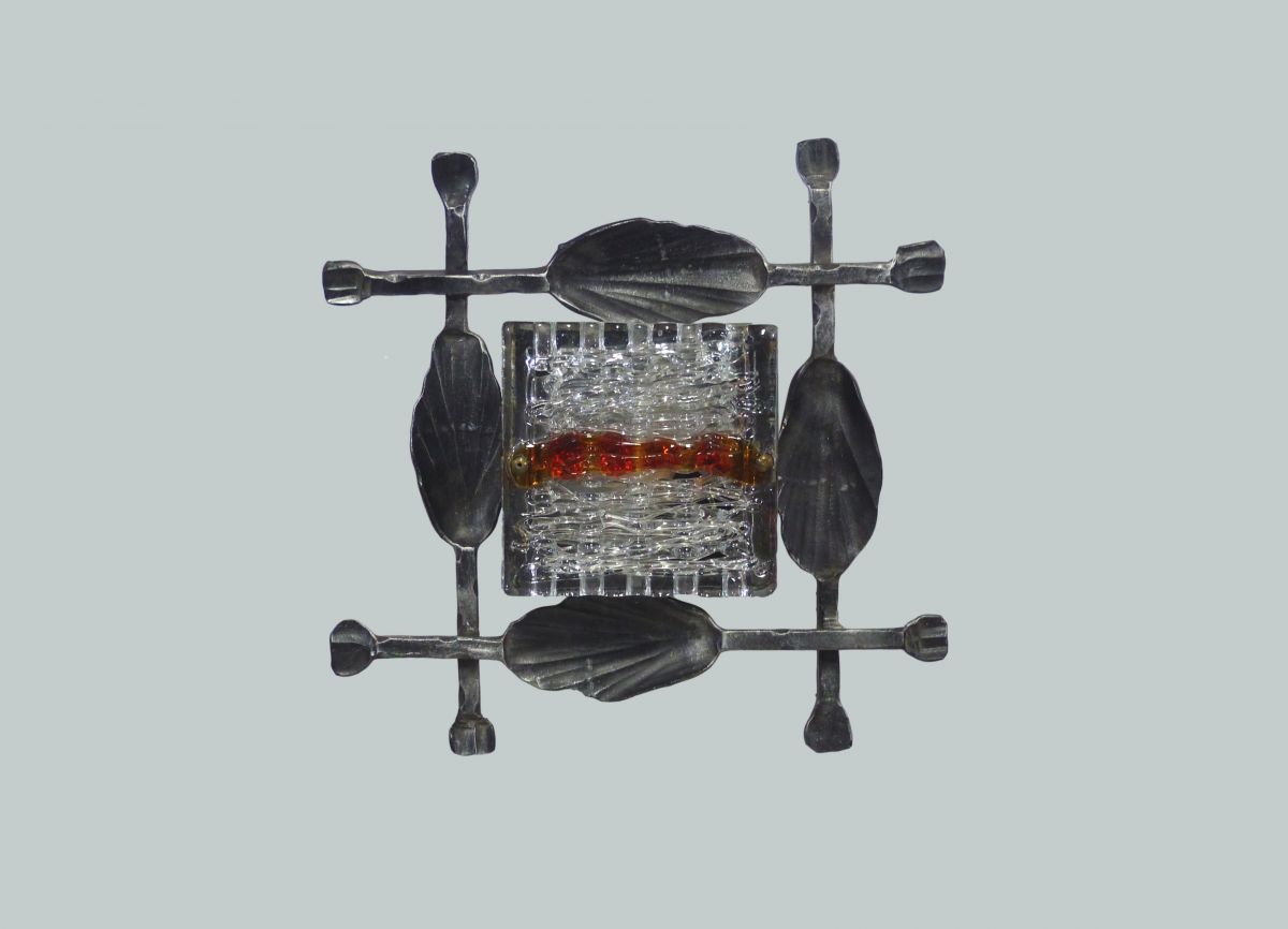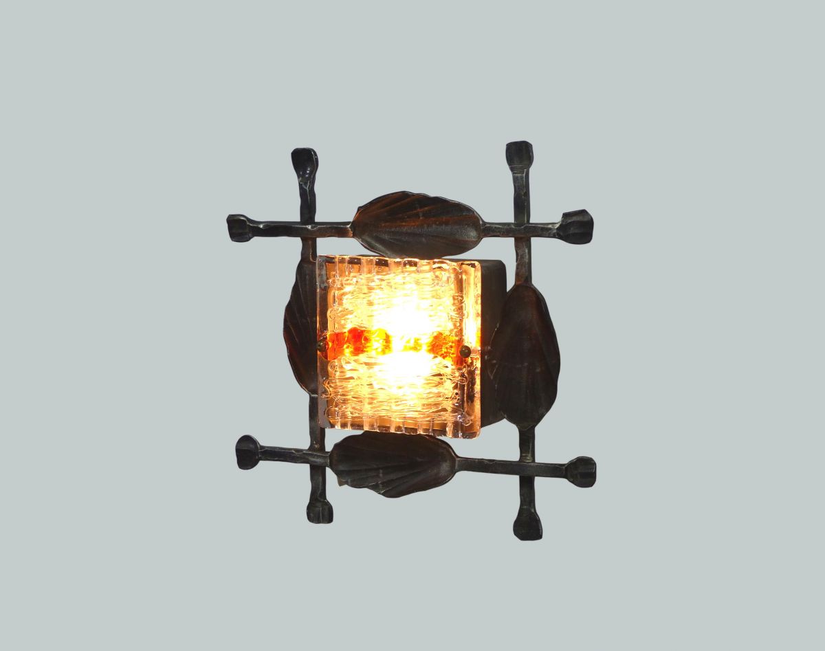 Applique brutaliste en fer forgé et verre Murano de Tom Ahlström.