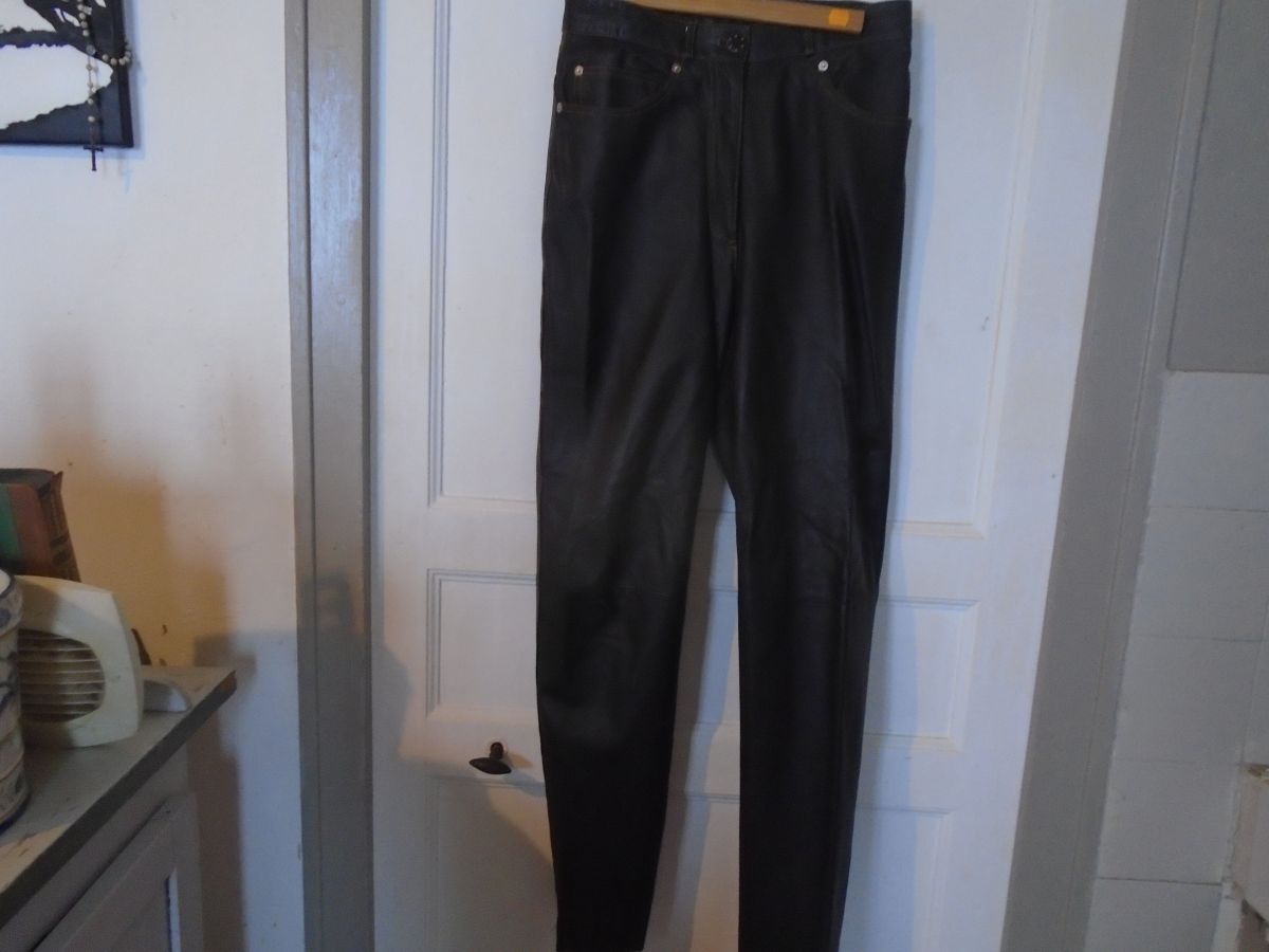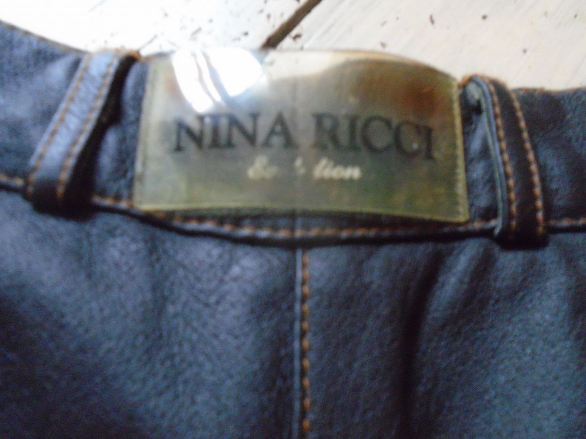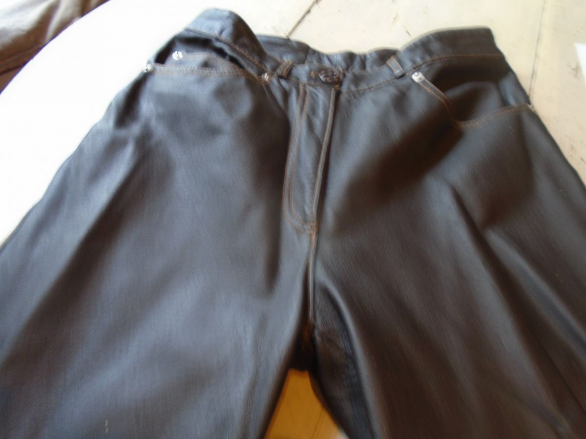 Pantalon en cuir synthétique de très bonne qualité, marron foncé, entièrement doublé de satin marron, Nina Ricci, T 40