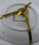 Assiette décorative en porcelaine dorée à l'or fin signée Salvador Dali. Elle fait partie de la série Deportes sur le thème des sports olympiques réalisée par Dali en 1978-80, et représente le cyclisme (ciclismo).