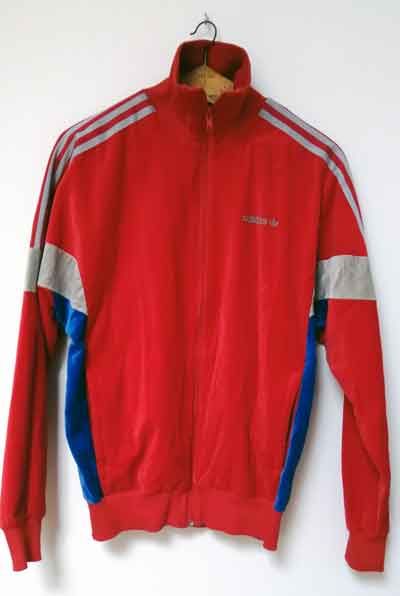 Magnifique veste challenger adidas rouge, bleue, grise avec fermeture zip et 2 poches côté.