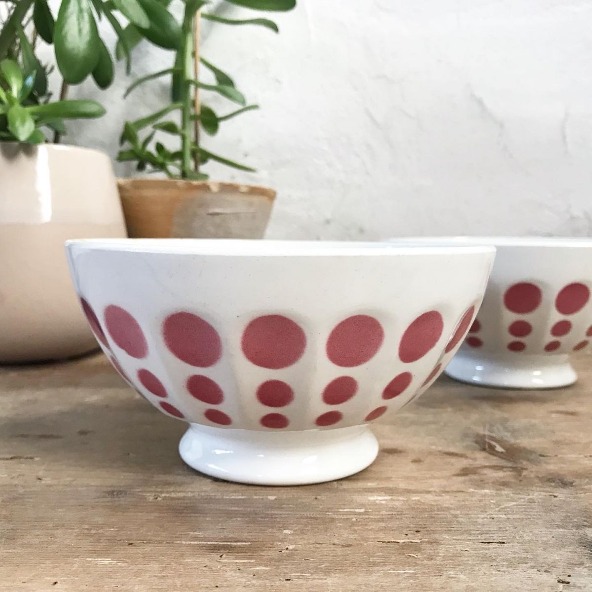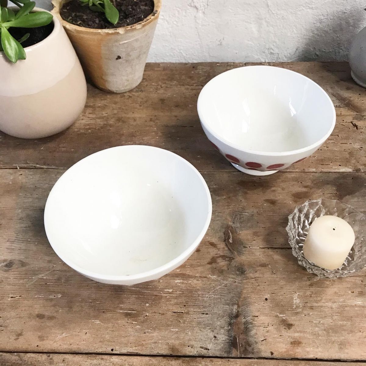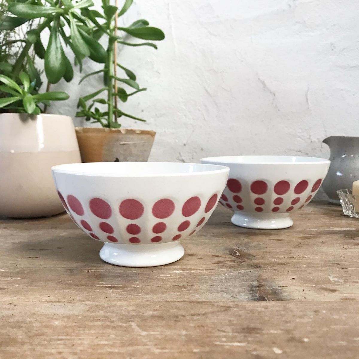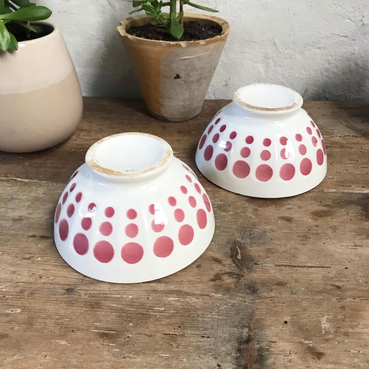 Paire de jolis bols des années 1950/1960 blancs à pois rose.