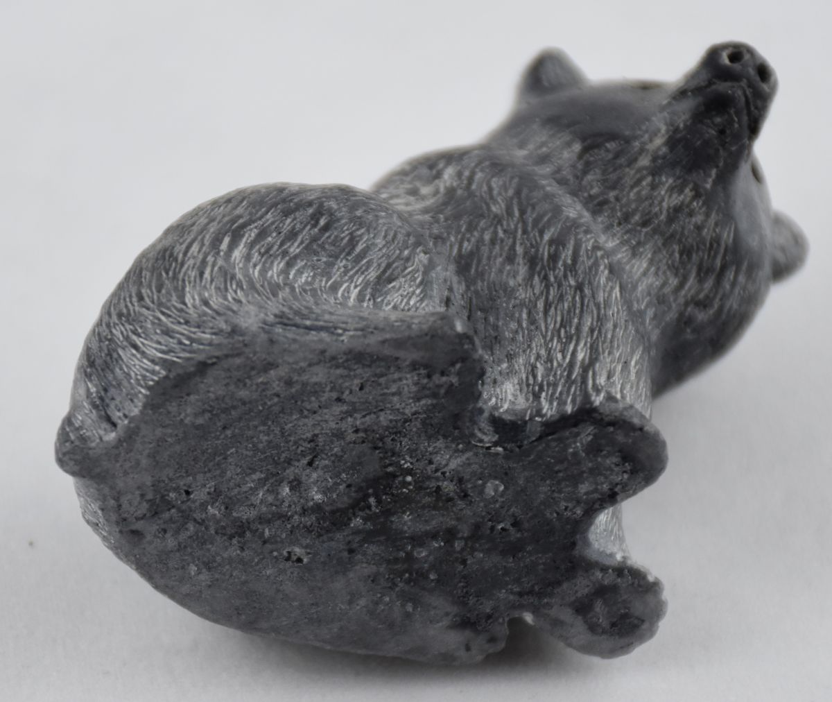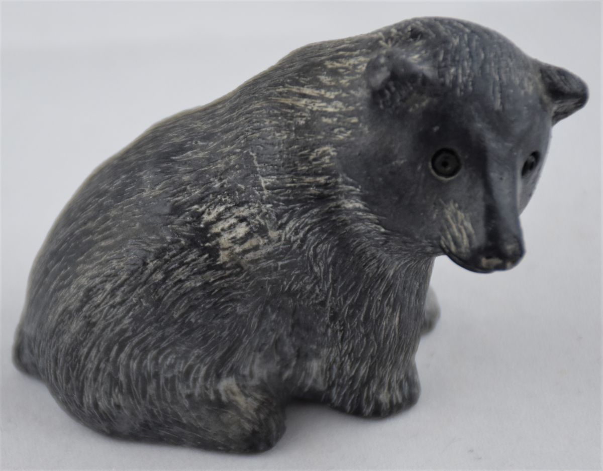 Ourson miniature gris foncé signé Meo à l'arrière. En pierre ?