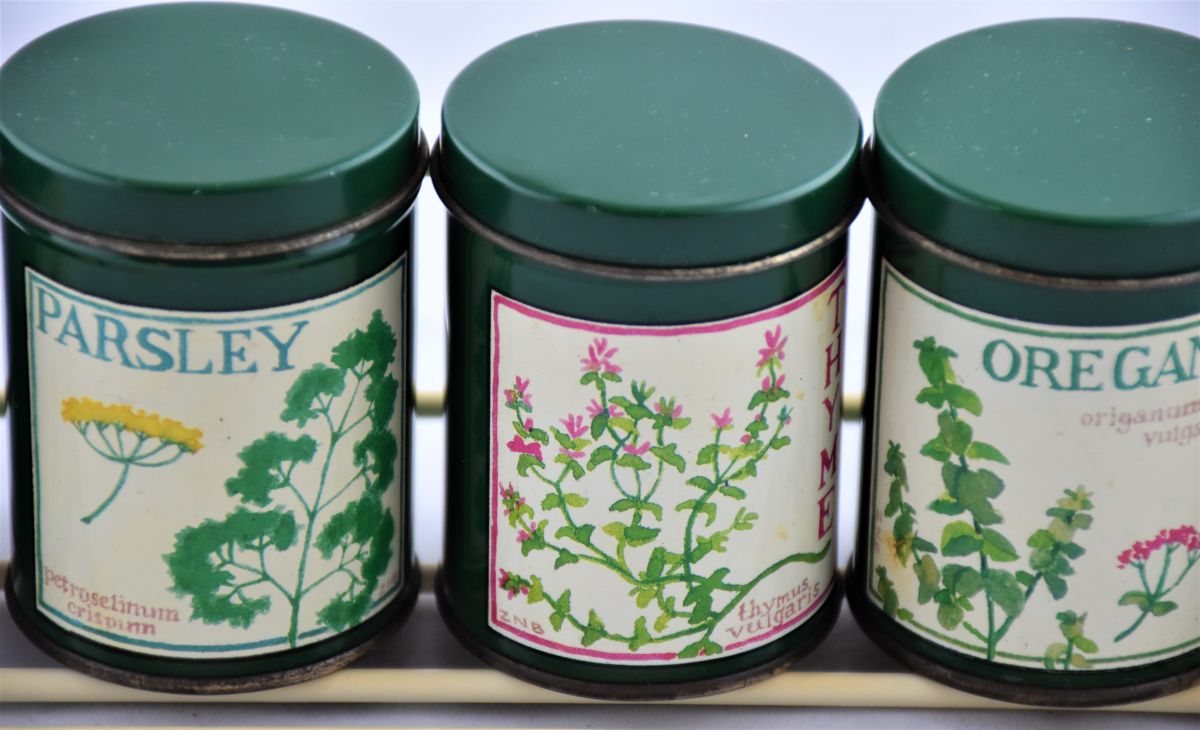 Persil, origan, thym, ciboulette, sauge et basilic, indiqués en anglais.