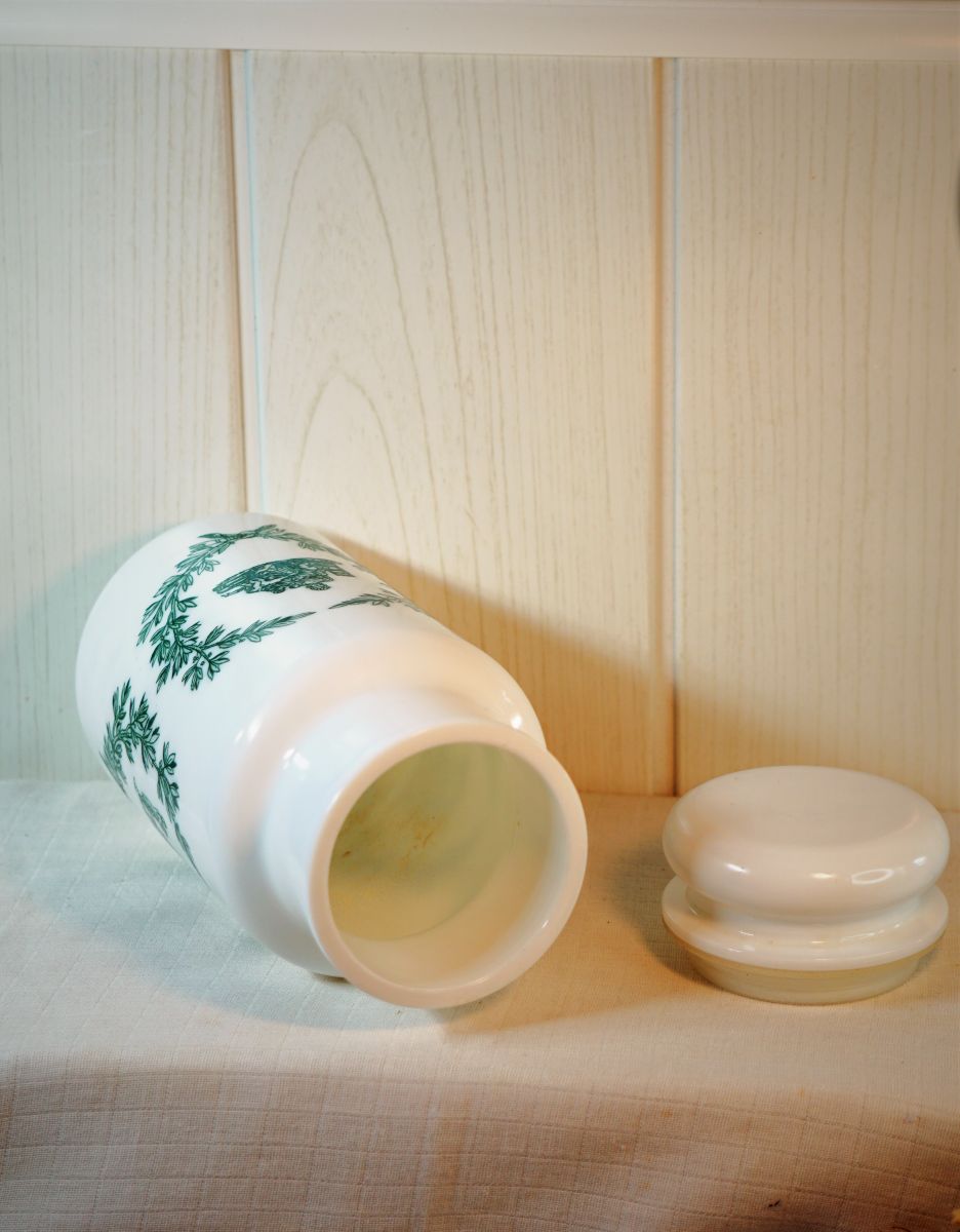 Ce charmant pot d'apothicaire en excellent état composé de verre blanc opalisé, apportera une touche d'authenticité à votre décoration. Pratique il vous permettra de conserver grâce à son bouchon hermétique, saveurs et vertus de vos tisanes, café, chicorée ou herbes médicinales.