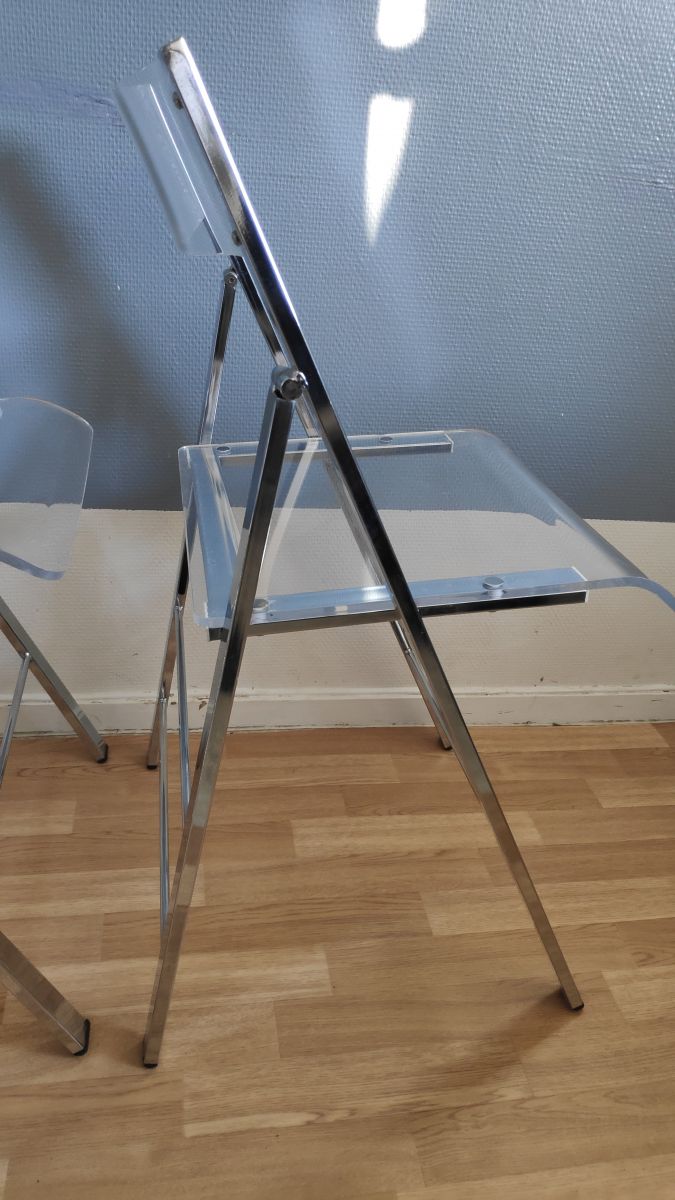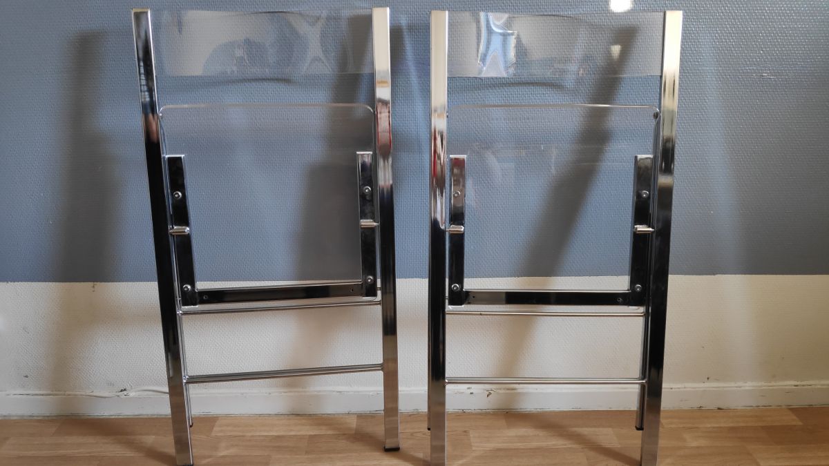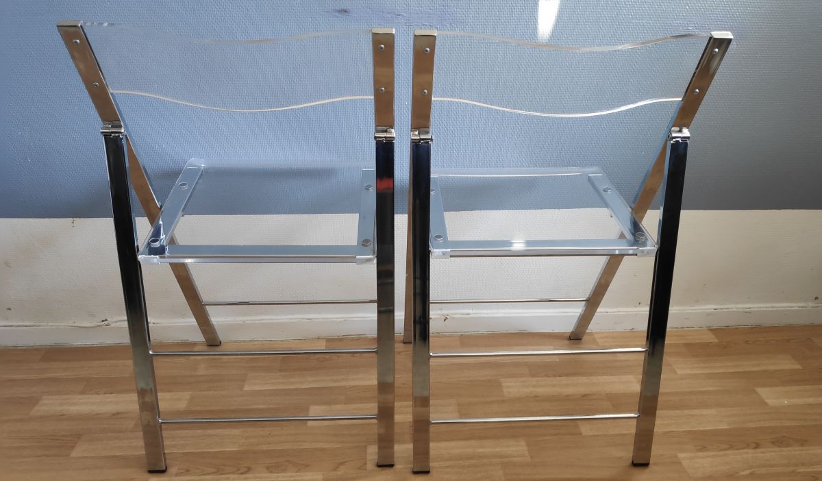 chaises pliantes en plexi et métal chromé vintage