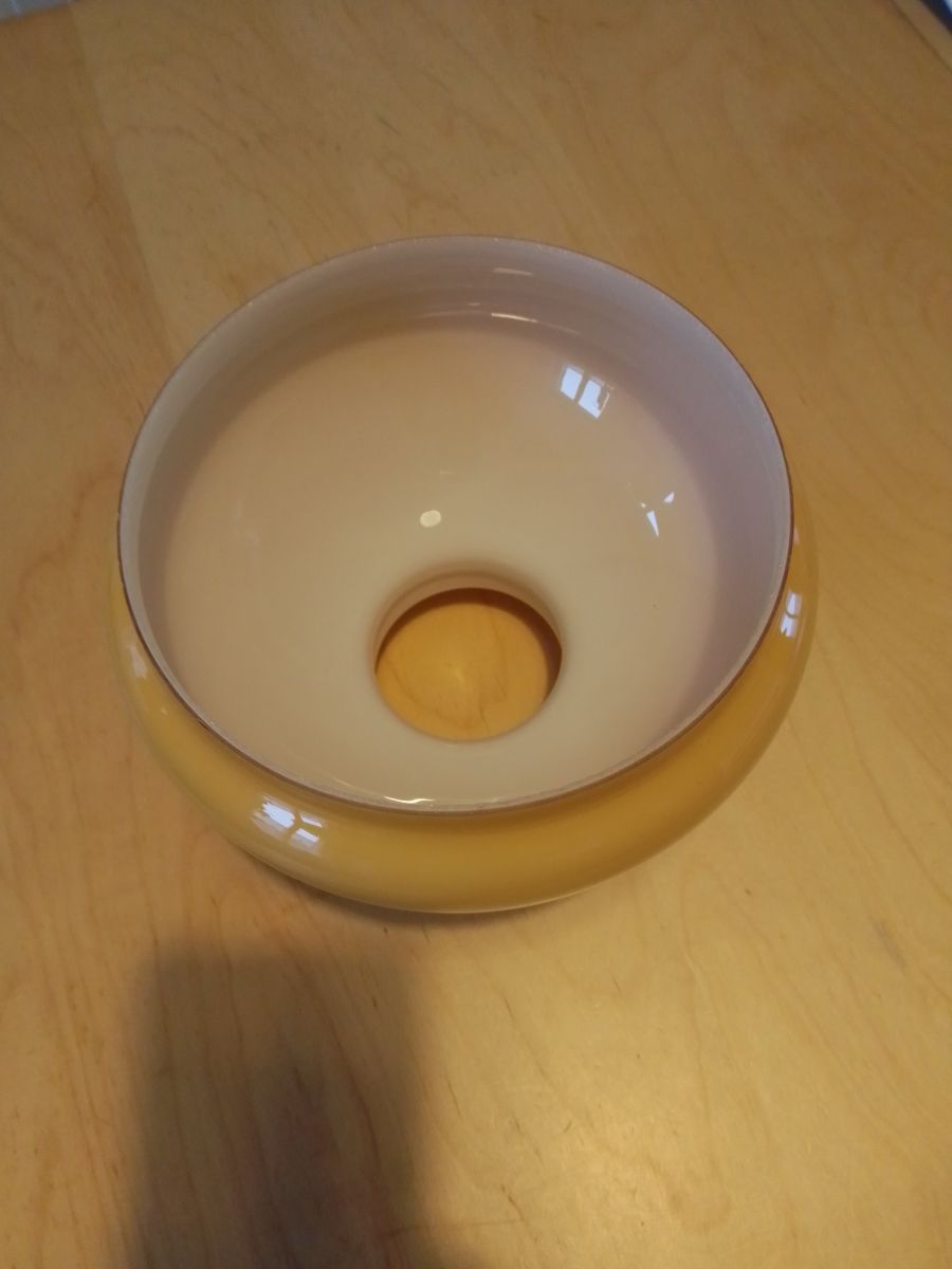 Coupole en opaline en bon état couleur caramel orangé pour un éclairage vintage.