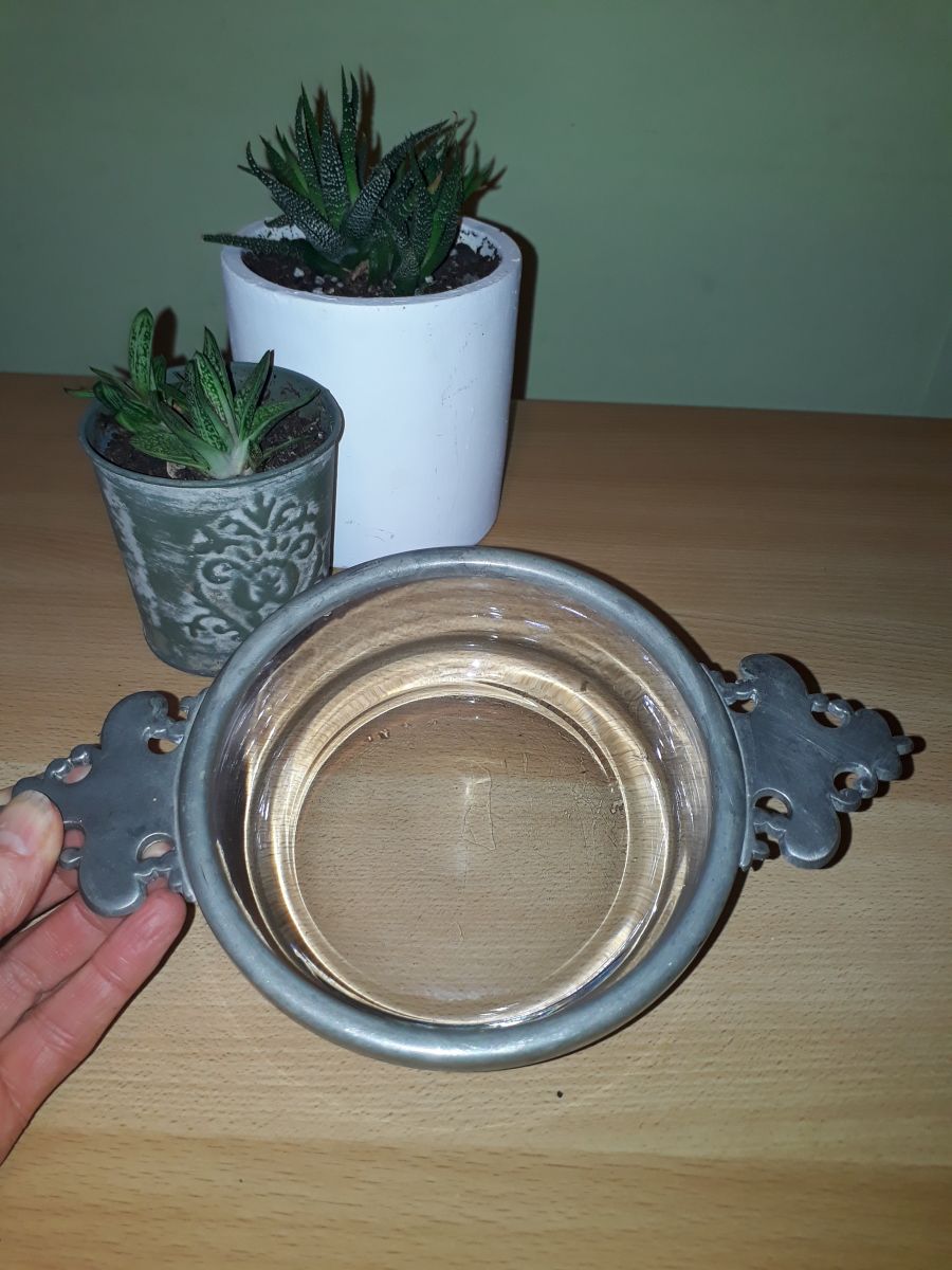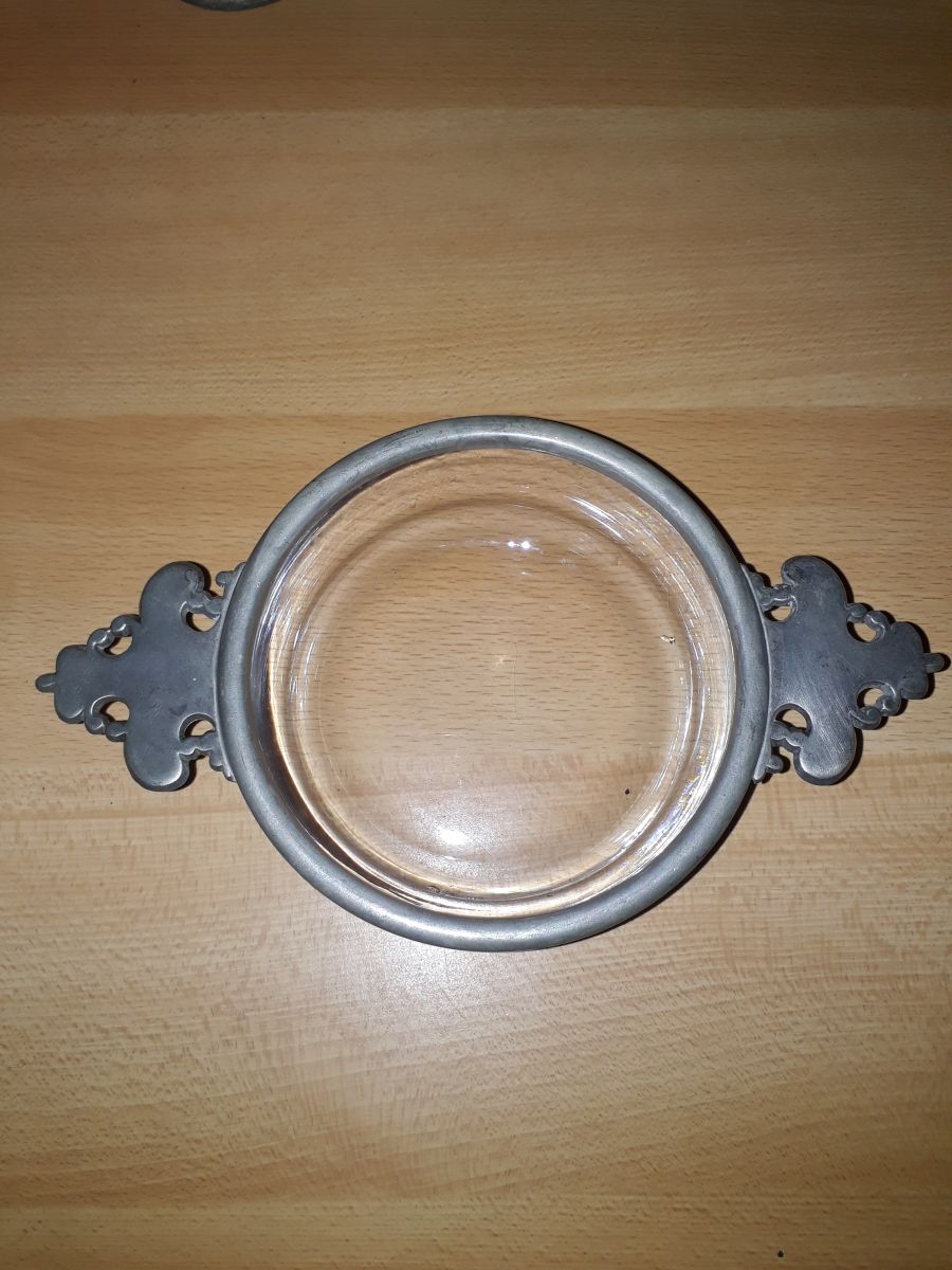 Coupelle Etain et verre signée "les étains du manoir" France