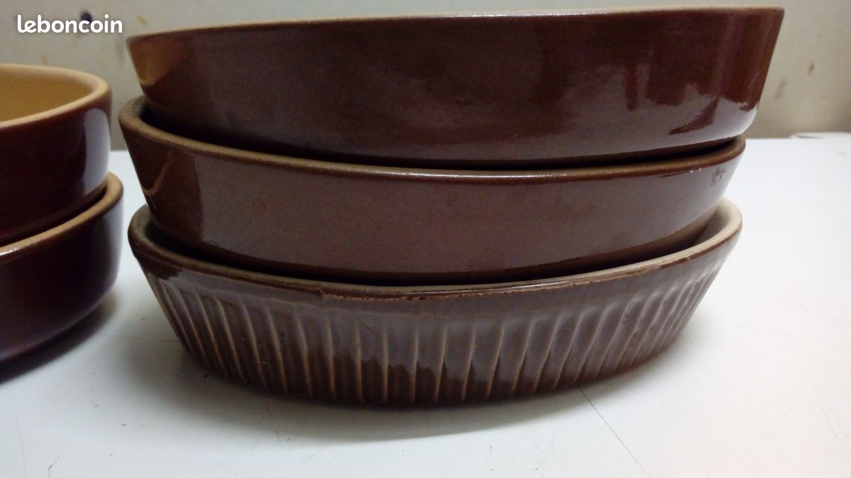 Lot de 5 plats à gratin, lasagnes, moussaka, en grès, fabrication française. Inscription marque "Renault Berry fabriqué en France".