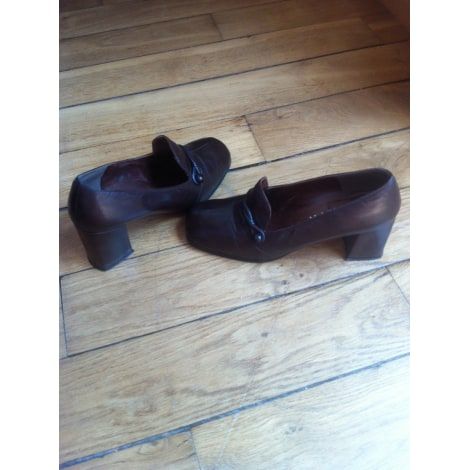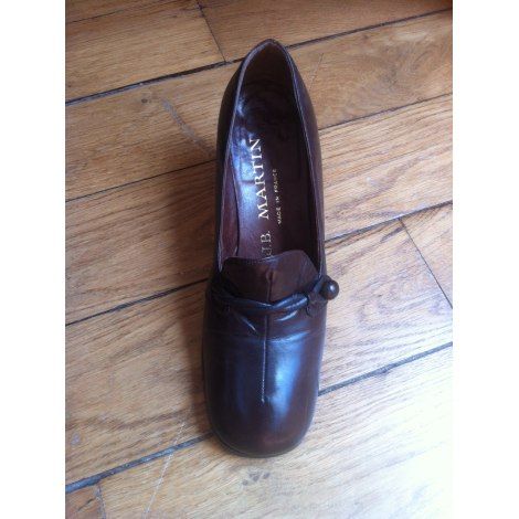 Escarpins JB Martin, couleur marron foncé, à talons carrés, en cuir doublé cuir. Excellent état, peu portées. Vintage 70s.