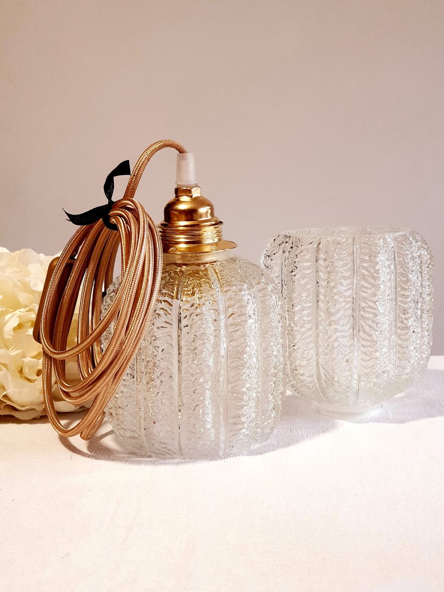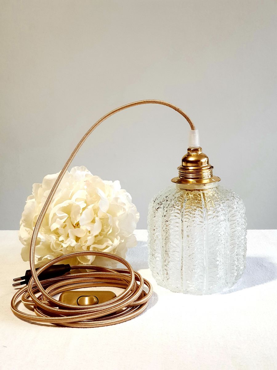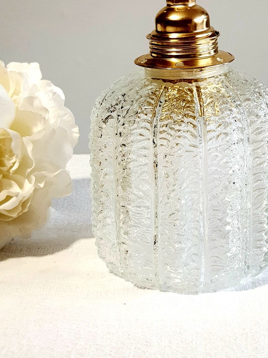 Jolie baladeuse, globe tulipe en verre moulé effet craquelée