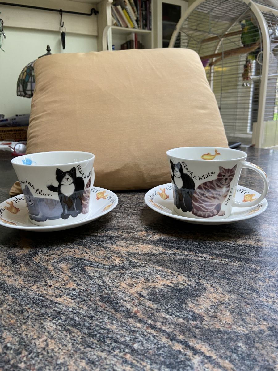 Duo tasse et soucoupes chats