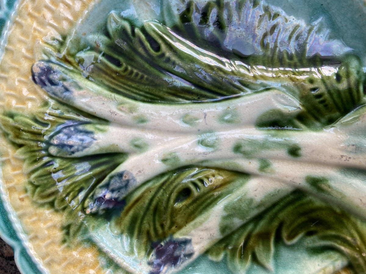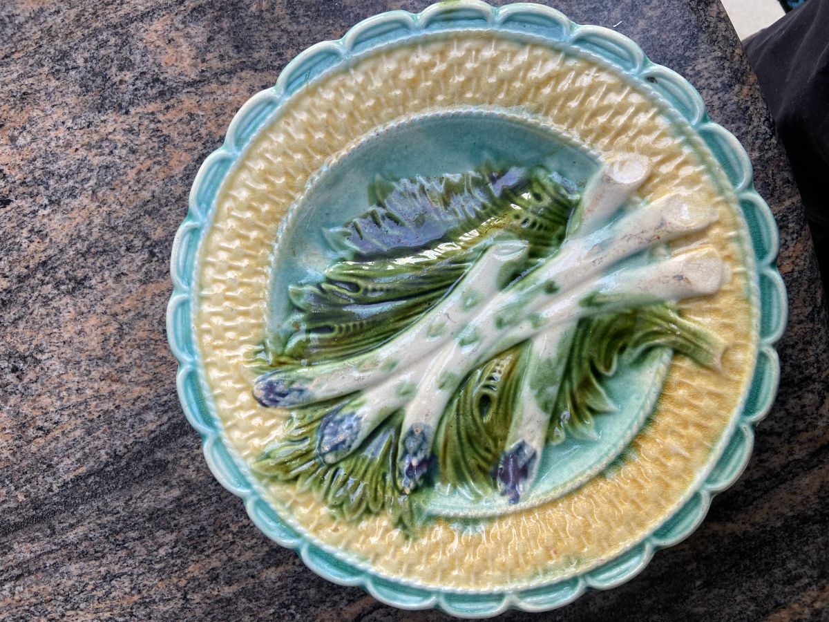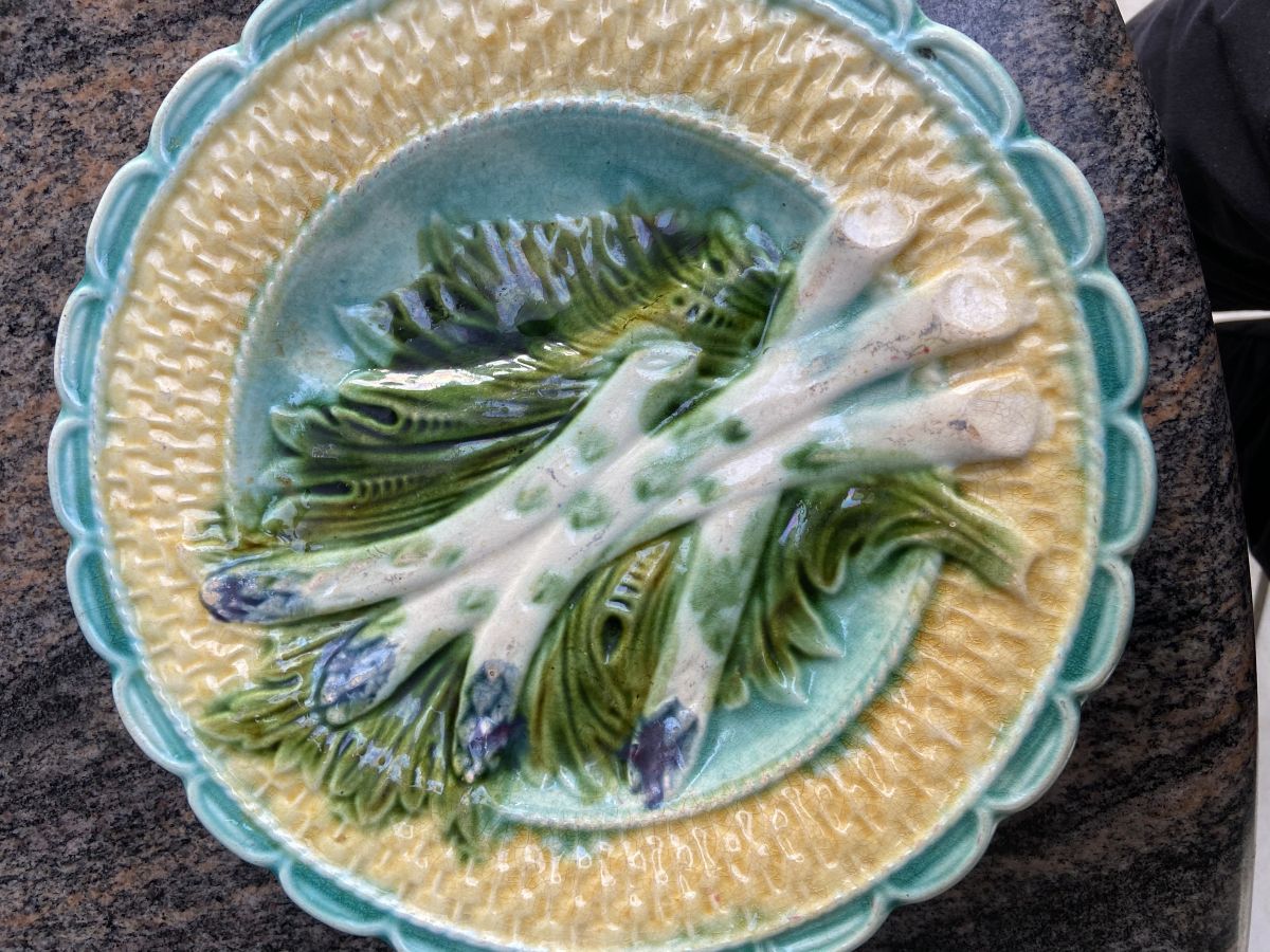 Ancienne assiette en barbottine theme asperge