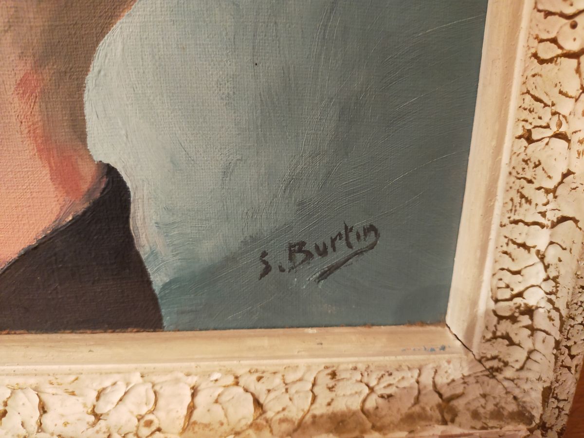 Huile sur toile représentant un portrait de femme, signé S.Burtin, daté de 1956 (au dos de la toile), école moderne, dimensions (cm) : L.39xH.47xP.3, bon état.