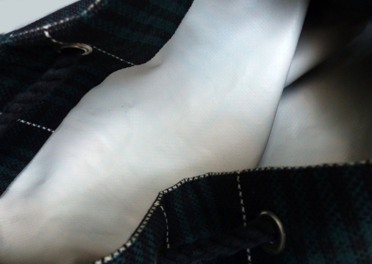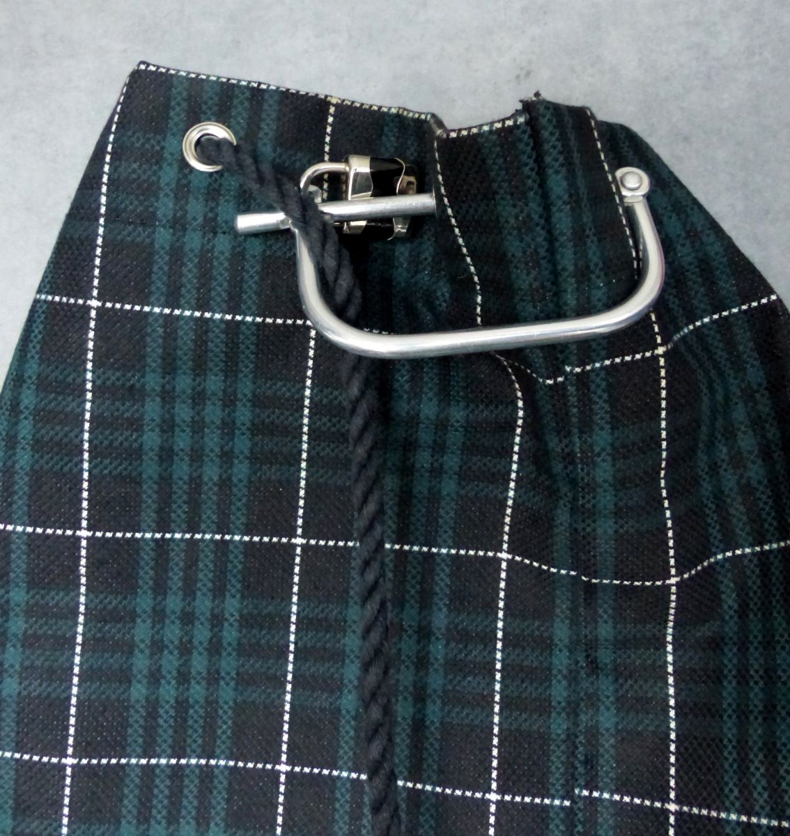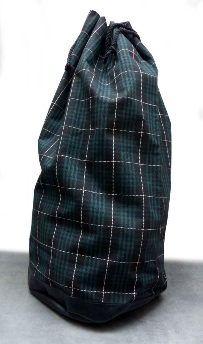 Grand sac de marin en tissu tartan. 1970 ou 75. Totalement neuf. Il peut servir de sac de marin, de sac de sport (mais il faut avoir beaucoup de baskets, de ballons, de shorts à mettre dedans...) ou de sac à linge. Homme ou femme. Tartan de toute façon. Base 35cm de diamètre.