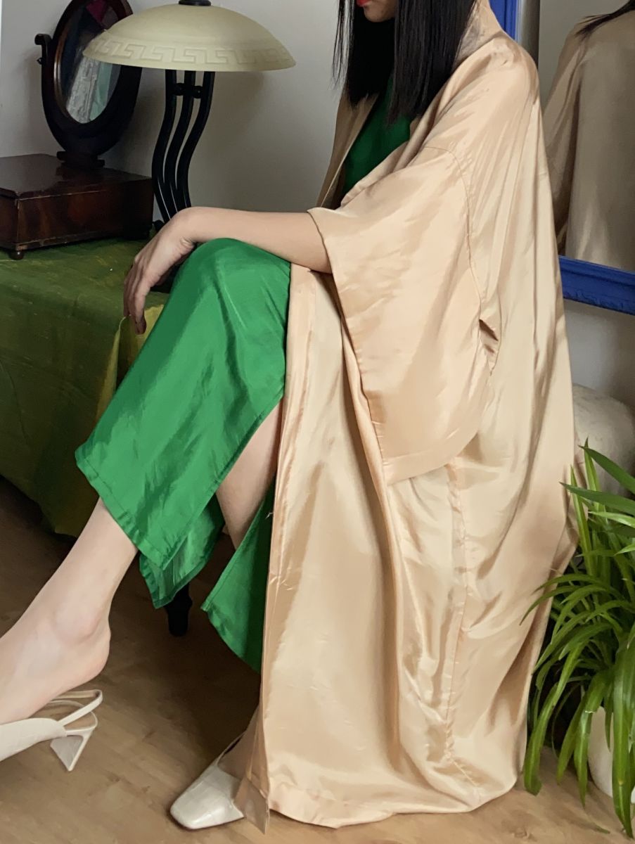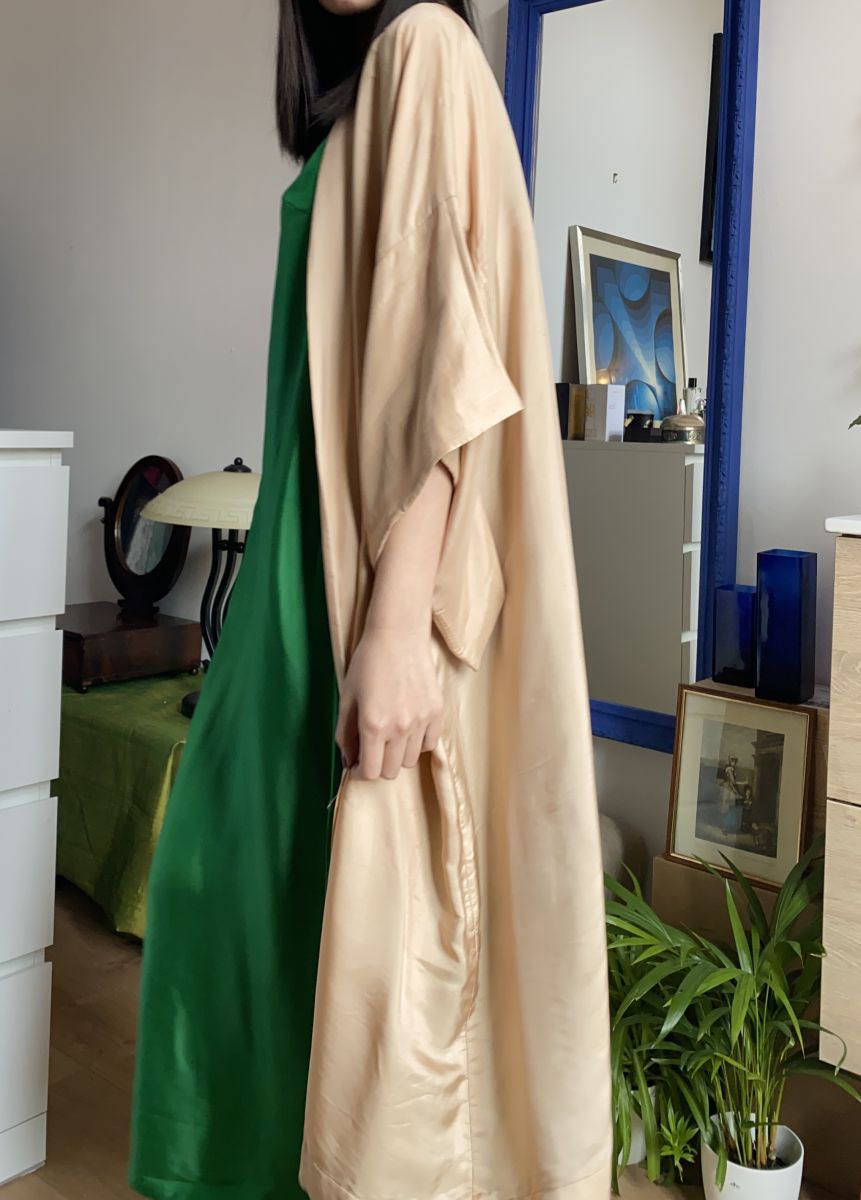 Kimono pyjama en 100% soie, colour: rosé beige. Size: S-M-L. Longeur: 107cm.
