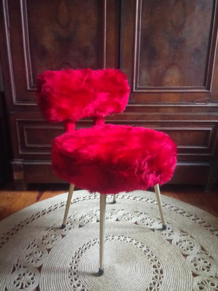 Chaise Pelfran moumoute rouge - Années 60/70