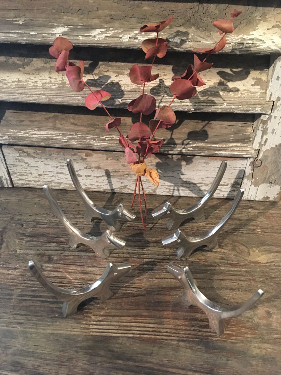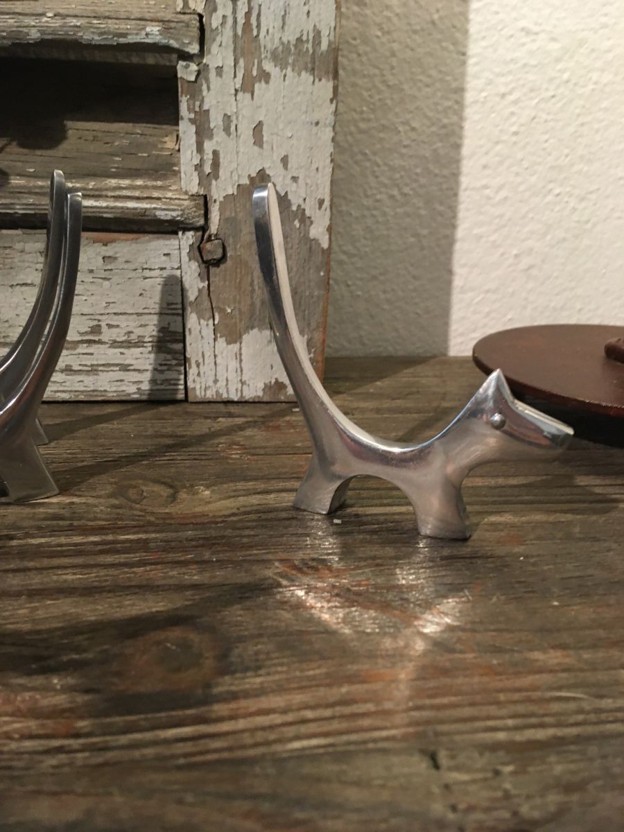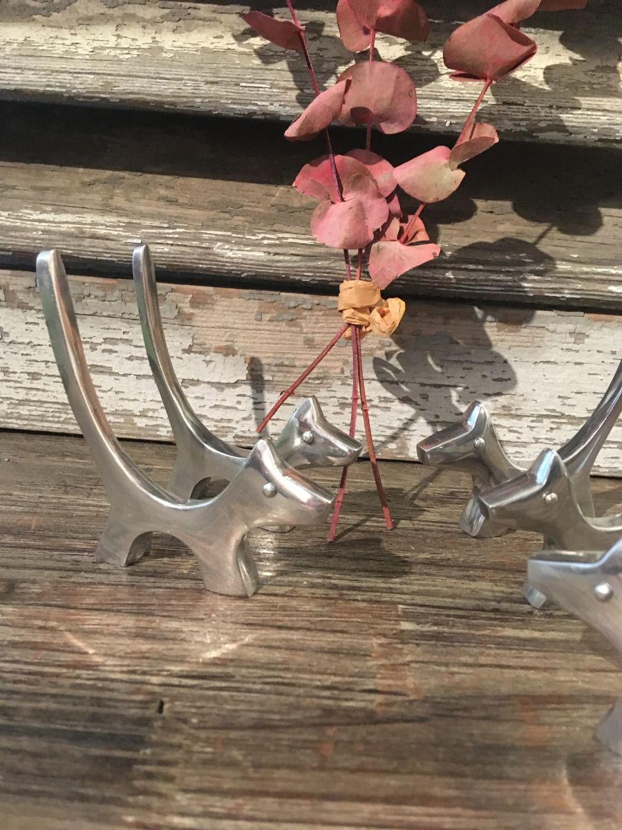 Anciens portes couverts en forme de chiens en inox.