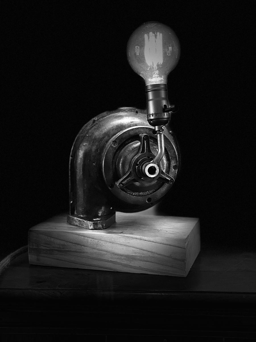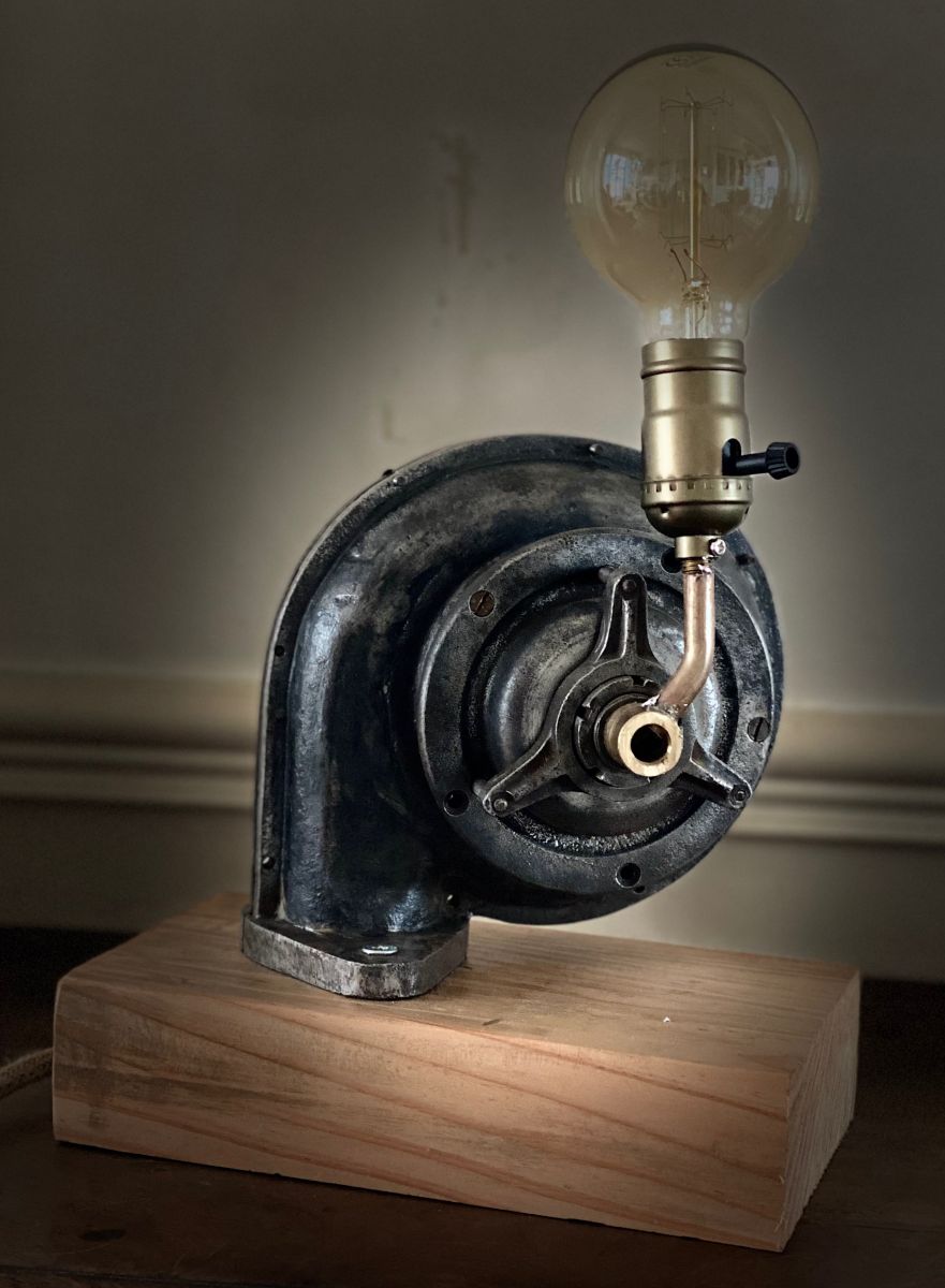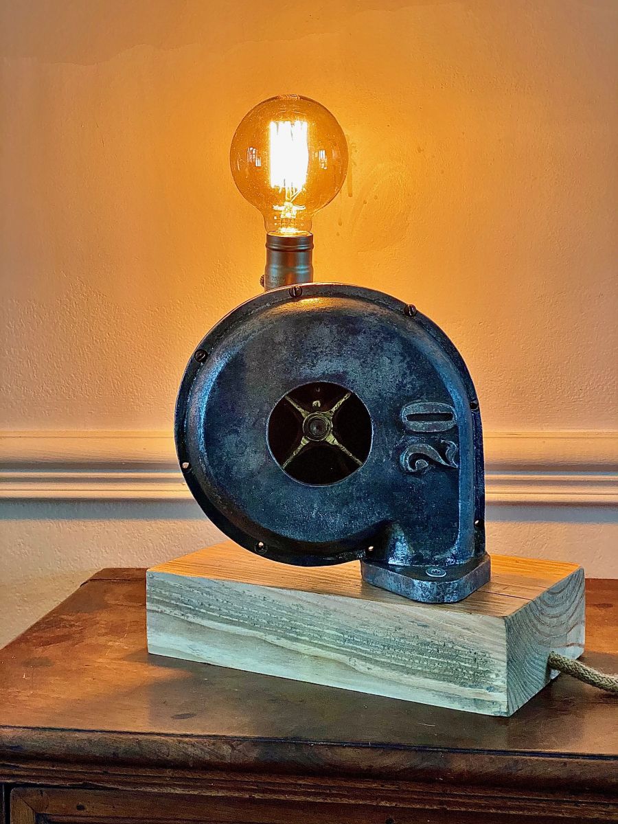 Lampe de décoration sur la base d’un ventilateur de forge.