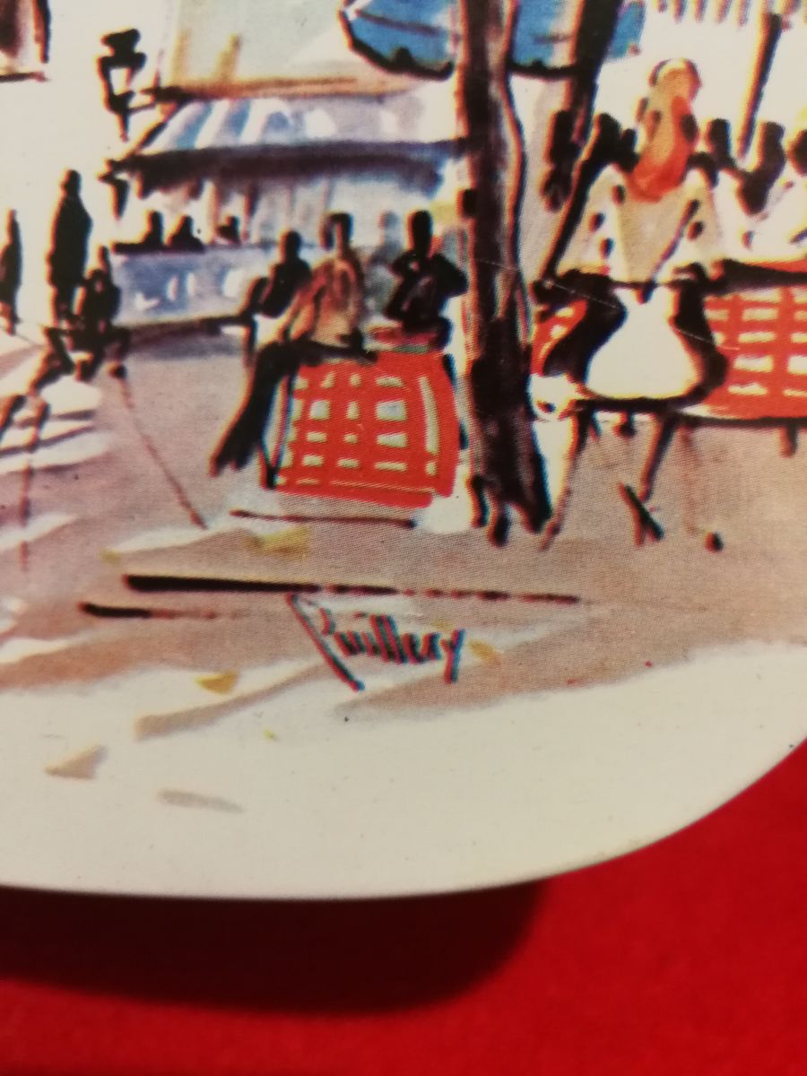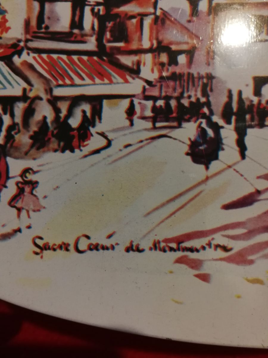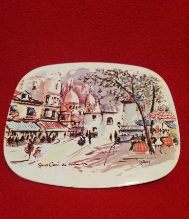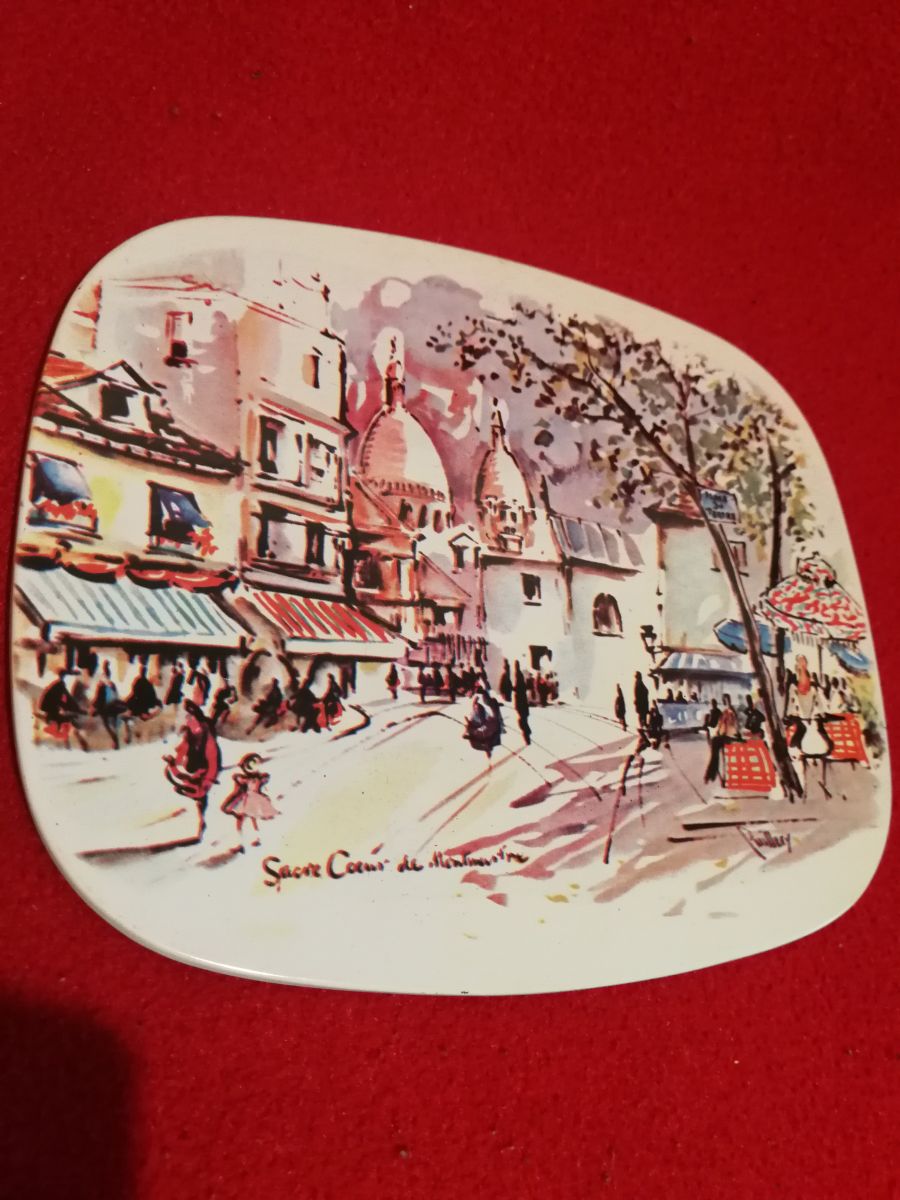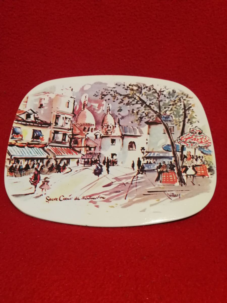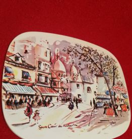 Petite plaque qui représente le Sacré Cœur de Montmartre, Place du Tertre signé Puillery illery