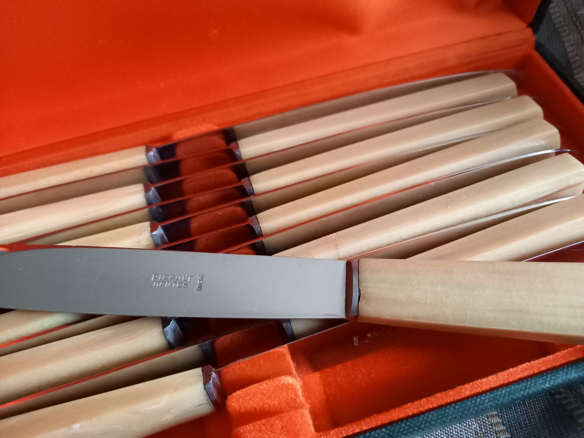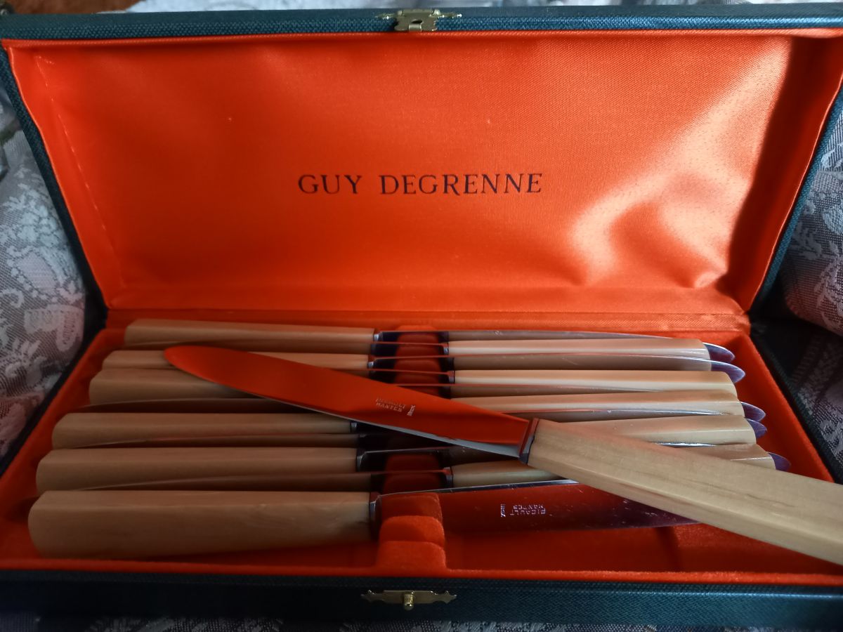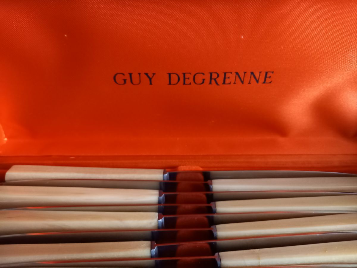 Service de 12 couteaux vintage de la marque Guy Degrenne dans leur boîte d'origine.