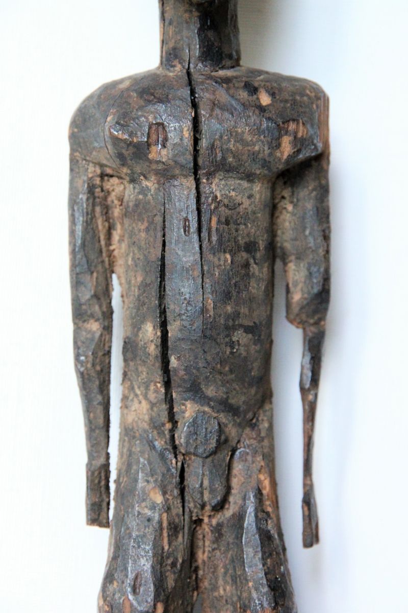 Des usures du bois au niveau des bras et du côté gauche du visage.