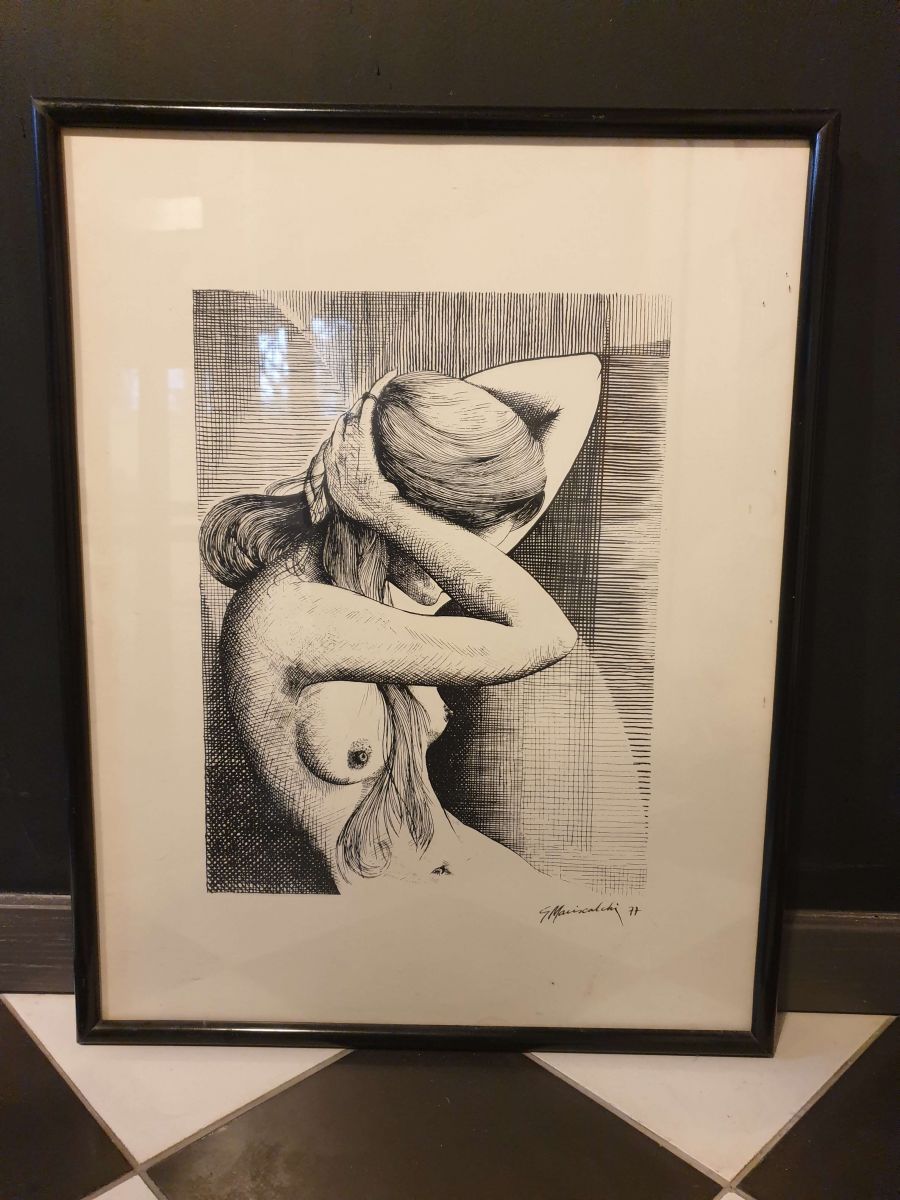 Estampe. Nu de femme, noir et blanc, encadré. Encre.