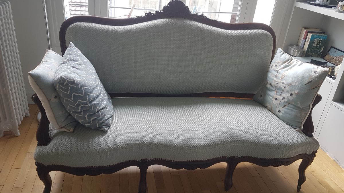 Canapé style Louis XV retissé à neuf assise 40 cm